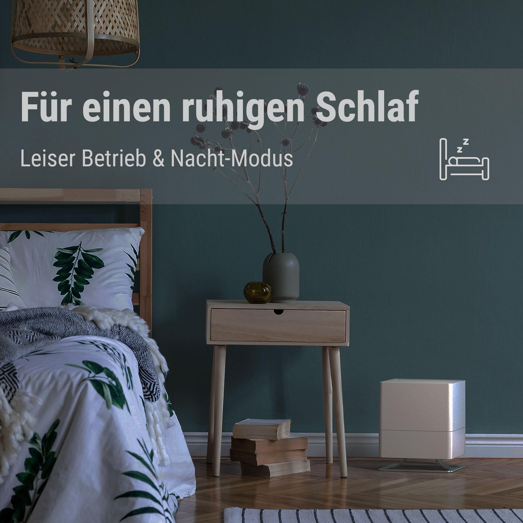 - LEISER NACHTMODUS: Als optimaler Luftbefeuchter für Schlafzimmer ist Oskar hier kaum zu hören, zusätzlich können seine LEDs im Nachtmodus gedimmt werden