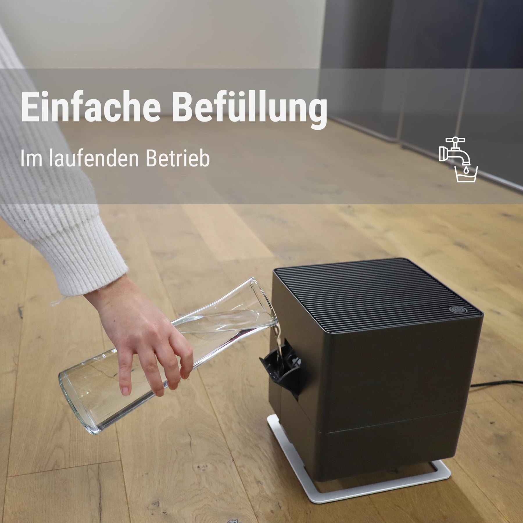 - LIEFERUMFANG: 1 x Luftbefeuchter Oskar inkl. Bedienungsanleitung, 1 Water Cube und 2 Verdunsterkassetten von Stadler Form