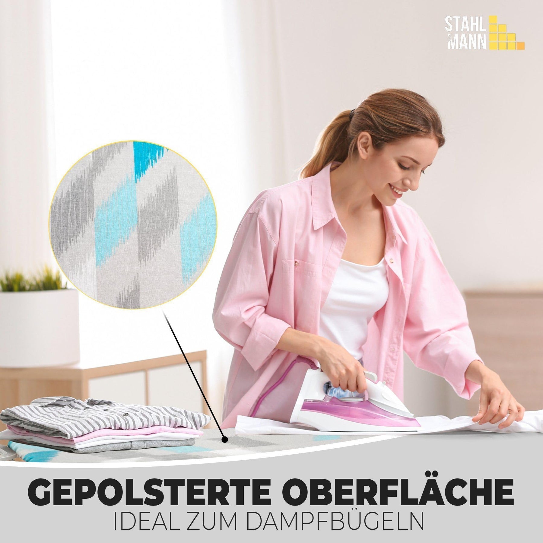 STAHLMANN ® Bügelbrett [110x30 Bügelfäche ] mit rutschfesten Füßen – robuster Bügeltisch – extra stabiles Bügelbrett [Made IN EU] – Tischbügelbrett