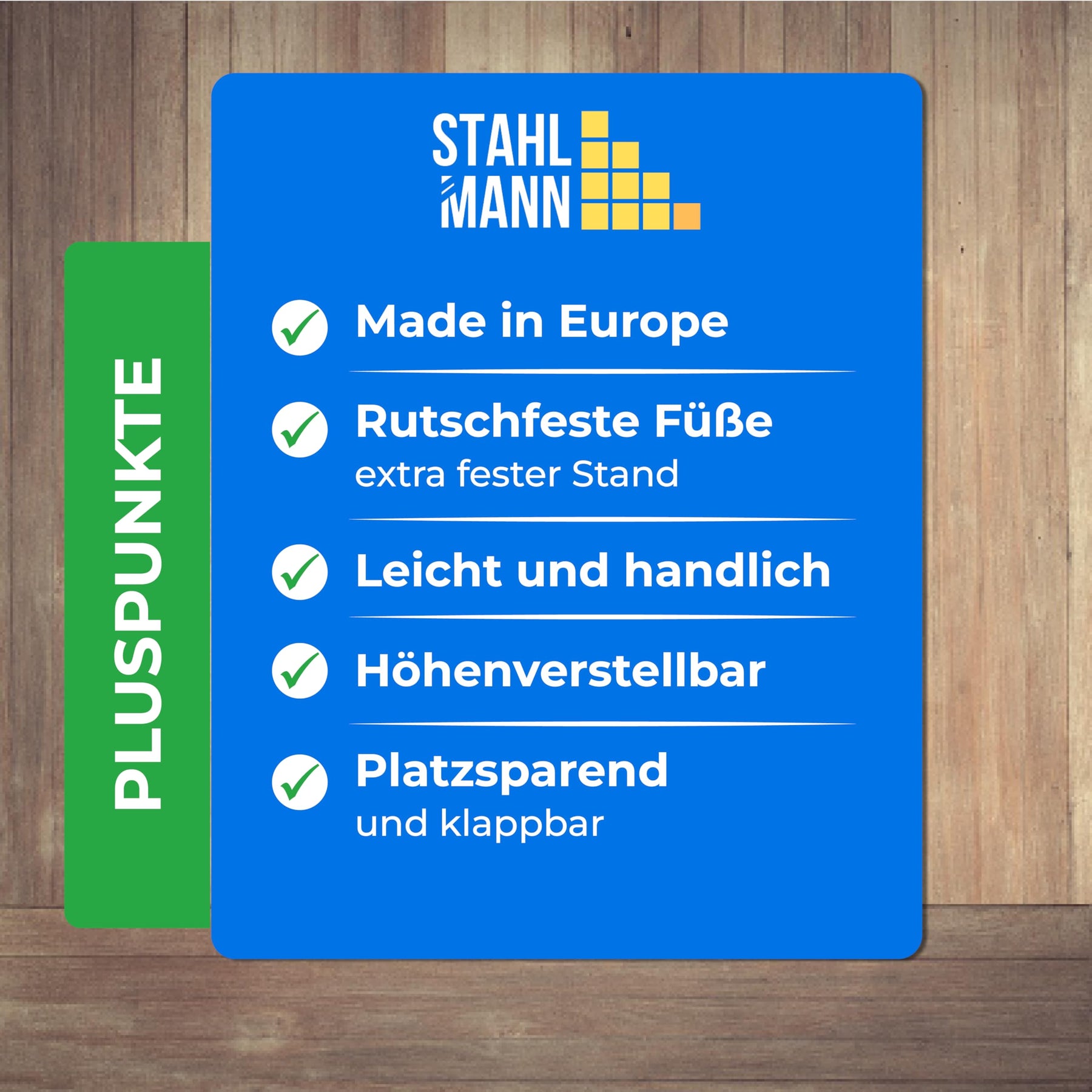 STAHLMANN ® Bügelbrett [114x34 Bügelfäche ] mit rutschfesten Füßen – robuster Bügeltisch – extra stabiles Bügelbrett [Made IN EU] – Tischbügelbrett