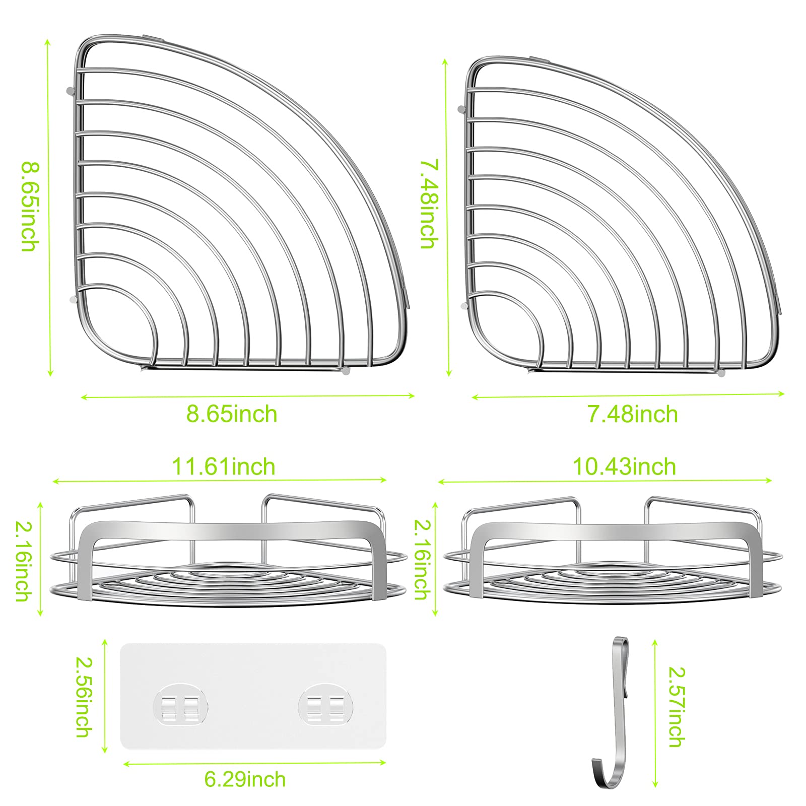 • 4 abnehmbare Haken - Die zusätzlichen Haken sind abnehmbar, Sie können die Haken überall und jederzeit einsetzen, für Badeschwämme, Rasierer, Badebürsten und andere Waschutensilien auf dieser Eckduschbox. Mehr Platz bleibt übrig.