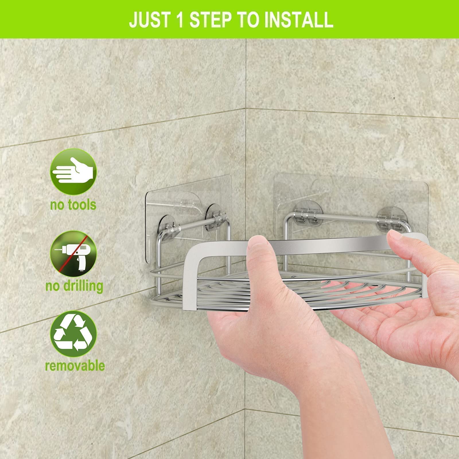 • Starker Klebstoff: Der wasserdichte Klebstoff hält Ihren Dusch-Organizer stabil. Das selbstklebende Badezimmer-Dusch-Wandregal ist haltbarer und stärker als Saugnäpfe. Hinweis: Erhitzen Sie den Kleber mit einem Fön, um den selbstklebenden Duschkorb neu zu positionieren, ohne Spuren zu hinterlassen oder die Wand zu beschädigen.