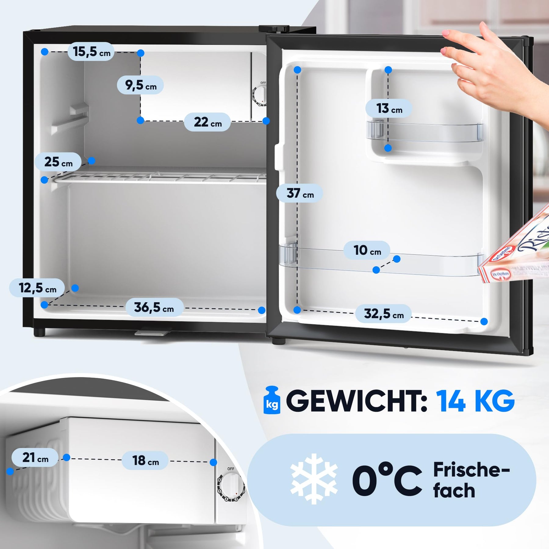 - SUPER LEISE & SUPER COOL - Mit der Stufenlosten Temperaturregelung können Sie die Kühlung an Ihre Bedürfnisse und Inhalt anpassen. Selbst bei höchster Stufe ist der Mini Kühlschrank mit nur 39 dB besonders leise: Vergleichbar mit flüstern oder einer ruhigen Wohnstraße.