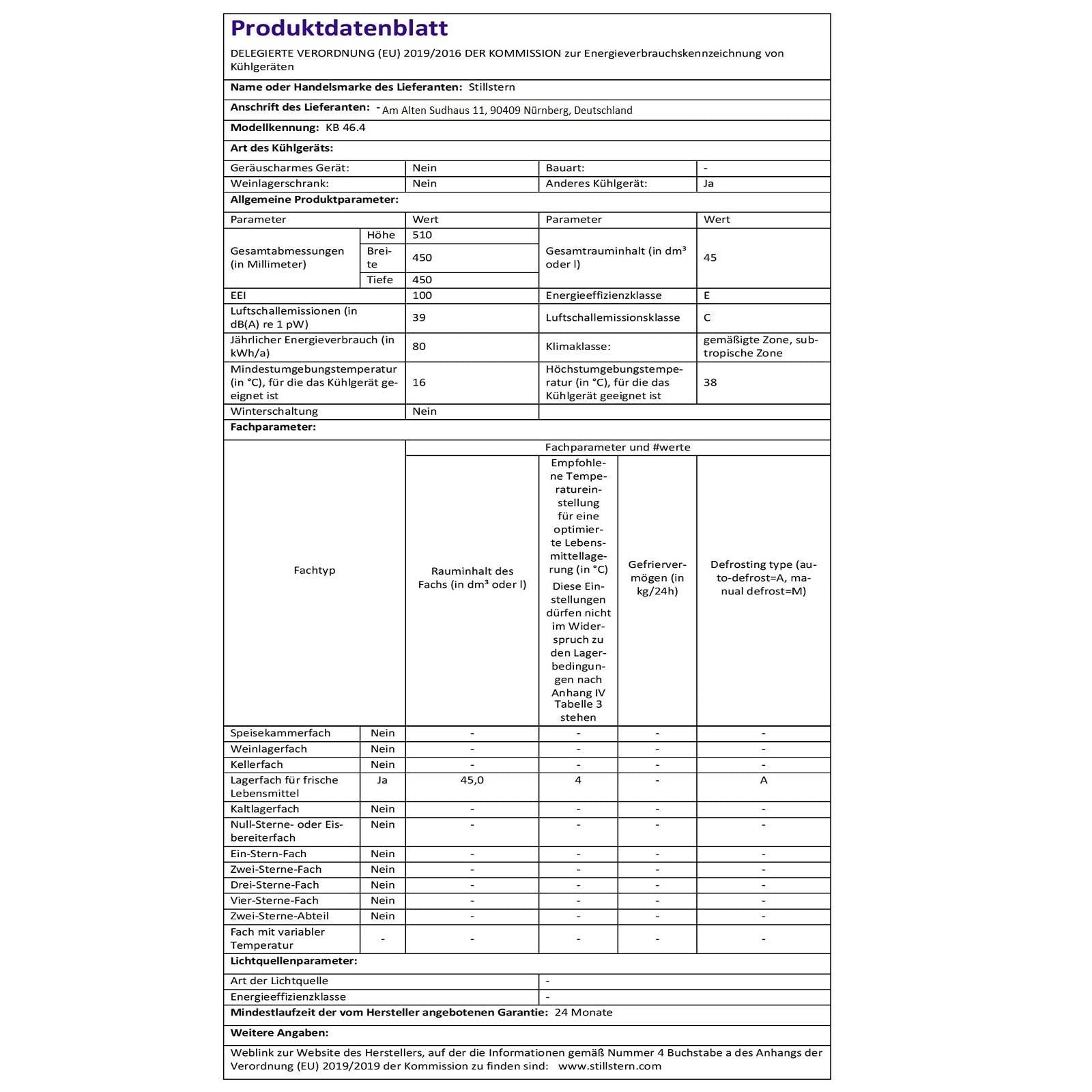 - HOCH EFFIZIENT & UMWELTFREUNDLICH – Der Mini Kühlschrank von STILLSTERN mit Energieeffizienzklasse E schont Ihren Geldbeutel und unsere Umwelt. Bei durchschnittlich 80 kWh/Jahr und einem durchschn. kWh Preis von 0,29 EUR, sind das nur 1,93 EUR im Monat.