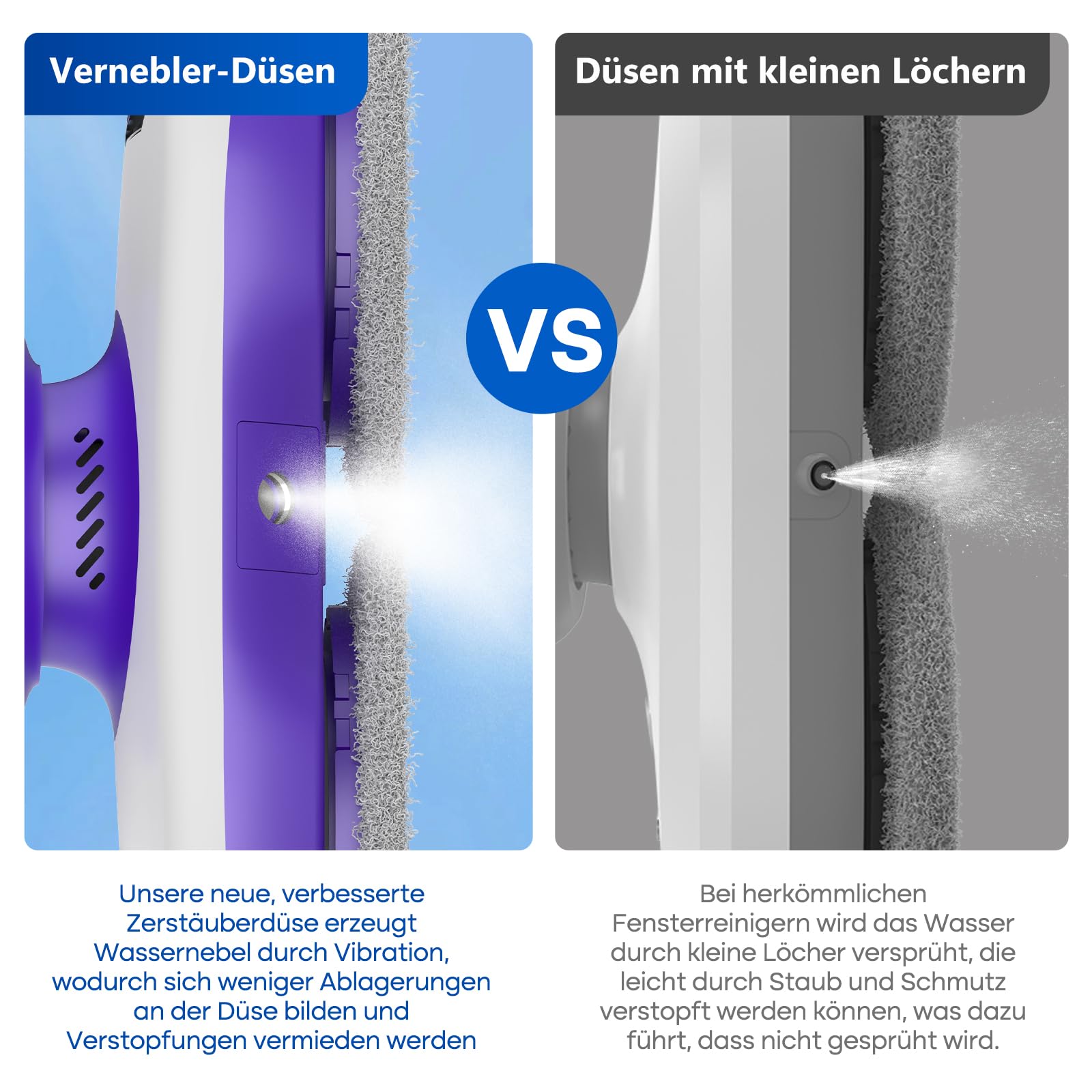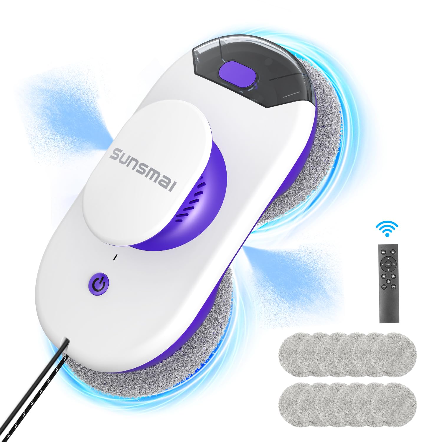 SUNSMAI Dual Side Spray Fensterputzroboter, Anti-verstopfungsfreie Elektrisch Automatischer Fensterroboter mit Wassersprühfunktion,3800pa Starke Anti-Drop Automatischer Fensterputzer,12 Tücher (Lila)