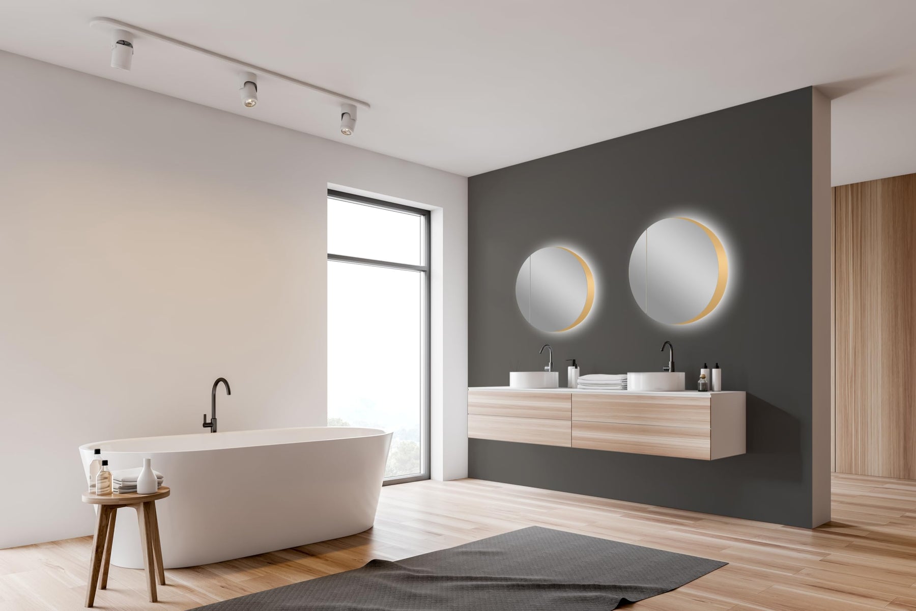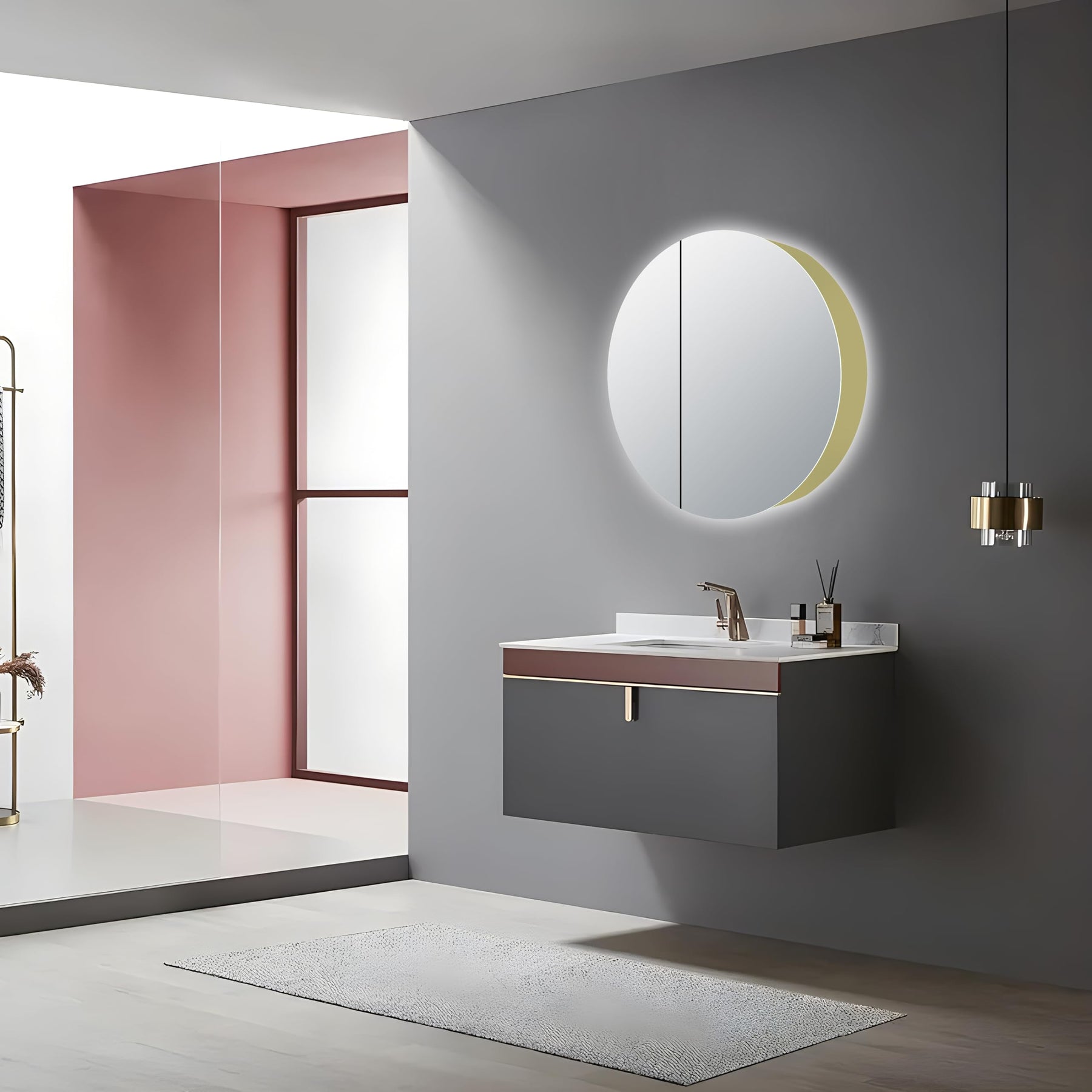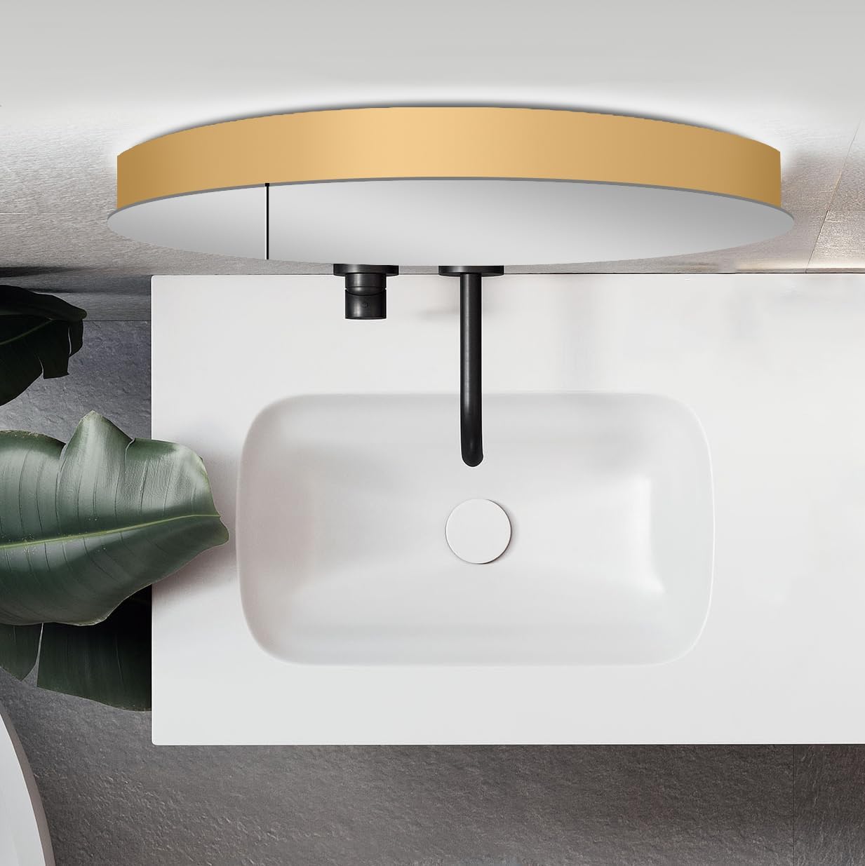 Talos Picasso Style Spiegelschrank Gold/weiß Ø 60cm - mit hochwertigem Aluminiumkorpus - Modernes Badezimmermöbel mit austauschbarer LED Beleuchtung - Badspiegel mit praktischem Stauraum