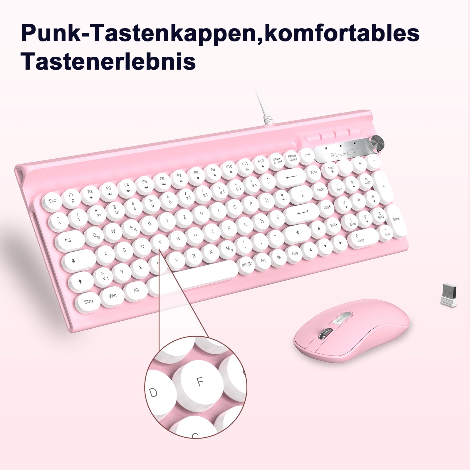 Tastatur Maus Set,RaceGT Tastatur Rosa Retro Schreibmaschine Tastatur Bunt Maus und Tastatur mit Handyhalterung Tastaturen Tastatur Kabel Keyboard für PC Mac Computer Laptop QWERTZ Deutsch