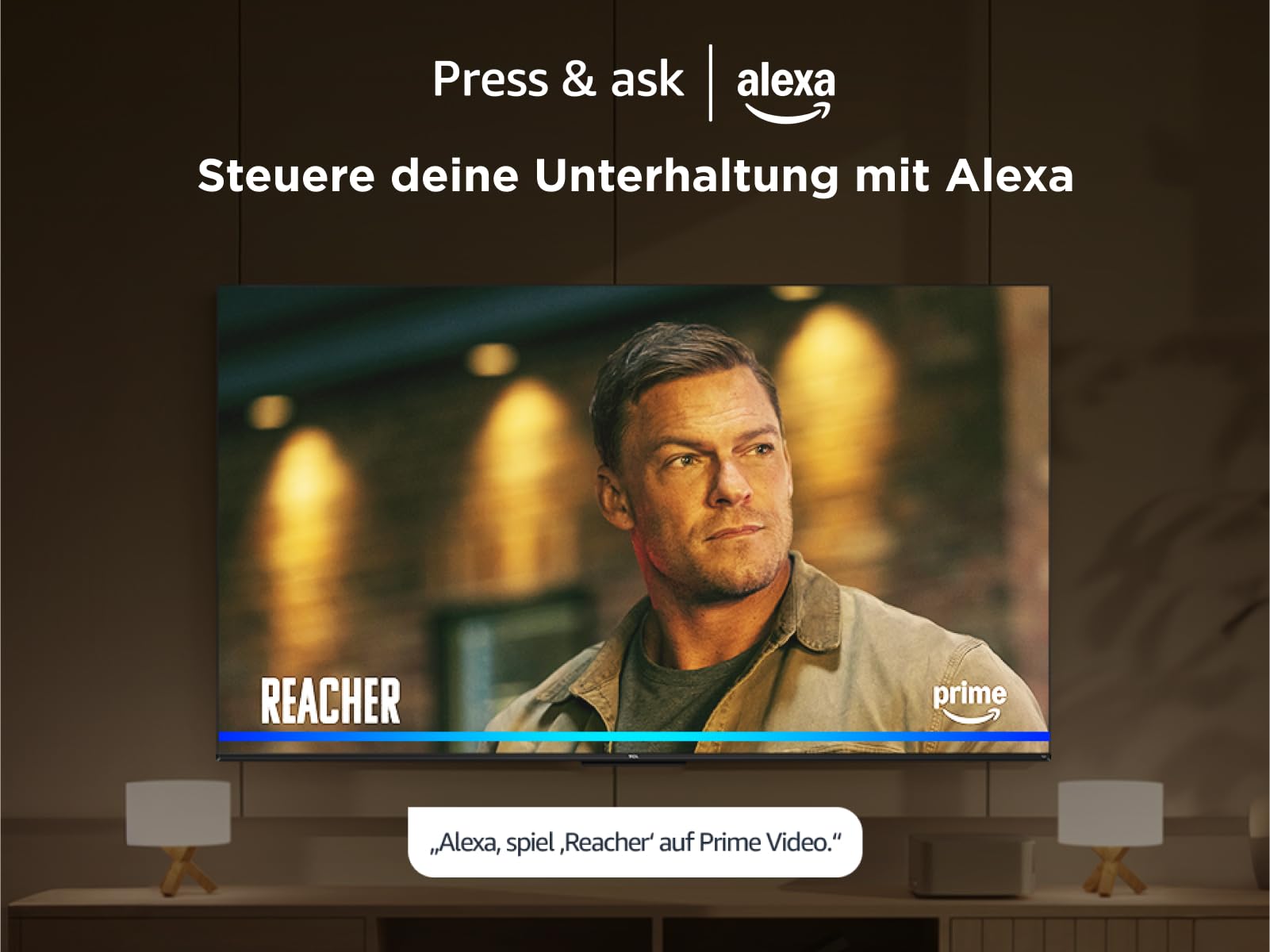 • Alexa built-in: Alexa spielt deinen Wunsch ab. Kein endloses Scrollen mehr. Drücke einfach die Alexa-Taste und nutze die Stimme, um neue Inhalte zu entdecken, die Lautstärke einzustellen, den Kanal zu wechseln oder sogar die Smart Home-Geräte zu steuern.