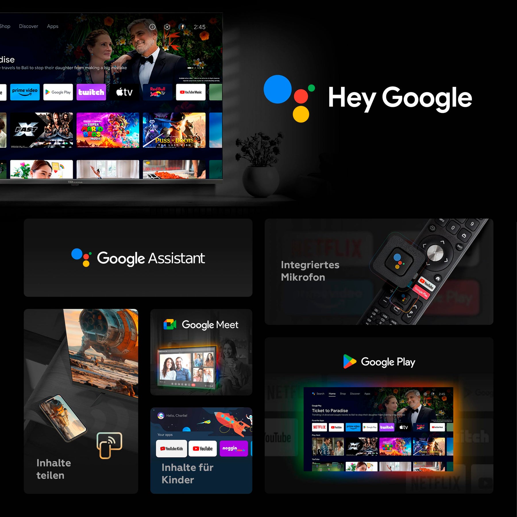 • ✅ Kompatibilität: YouTube, Netflix, Disney+, HBO Max, Prime Video und alle herunterladbaren Apps aus dem Google Play Store.