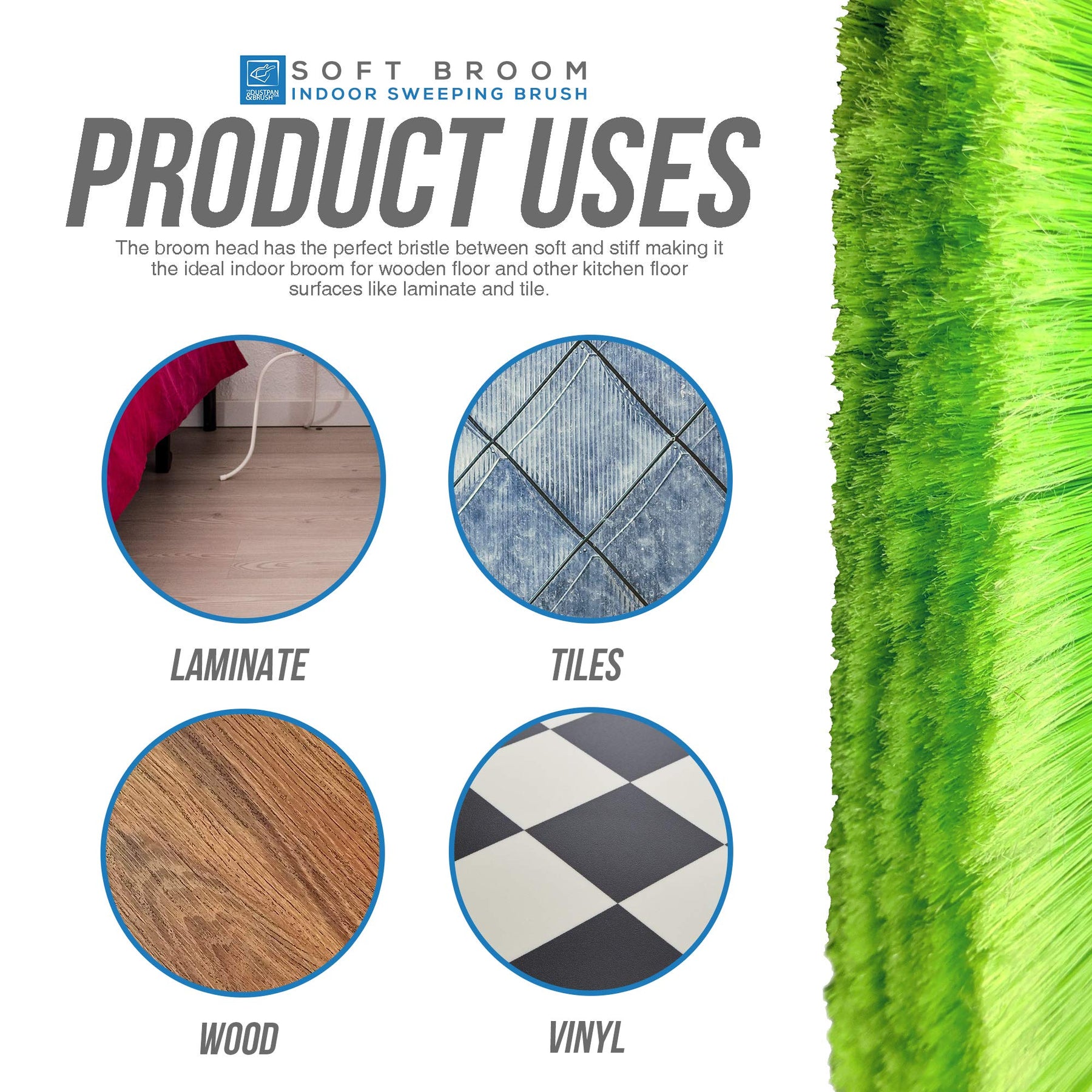- ✔ WEICHE BODENBÜRSTE - Der Besenkopf hat die perfekte Borste zwischen weich und hart, was ihn zum idealen Innenbesen für Holzböden und andere Küchenbodenoberflächen wie Laminat und Fliesen macht.