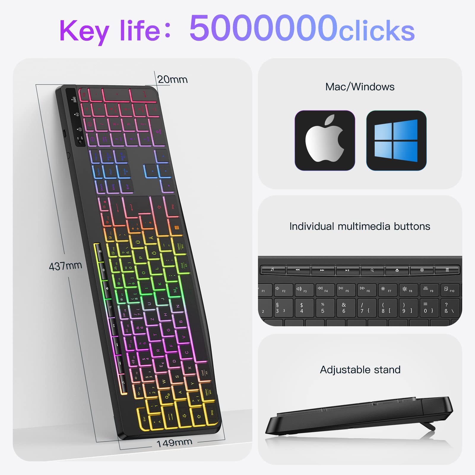 - Gaming Tastatur für Mac/PC: Die Tastatur ist für den Einsatz mit Mac, Laptop und Computer geeignet und verfügt über eine deutsche Tastenbelegung