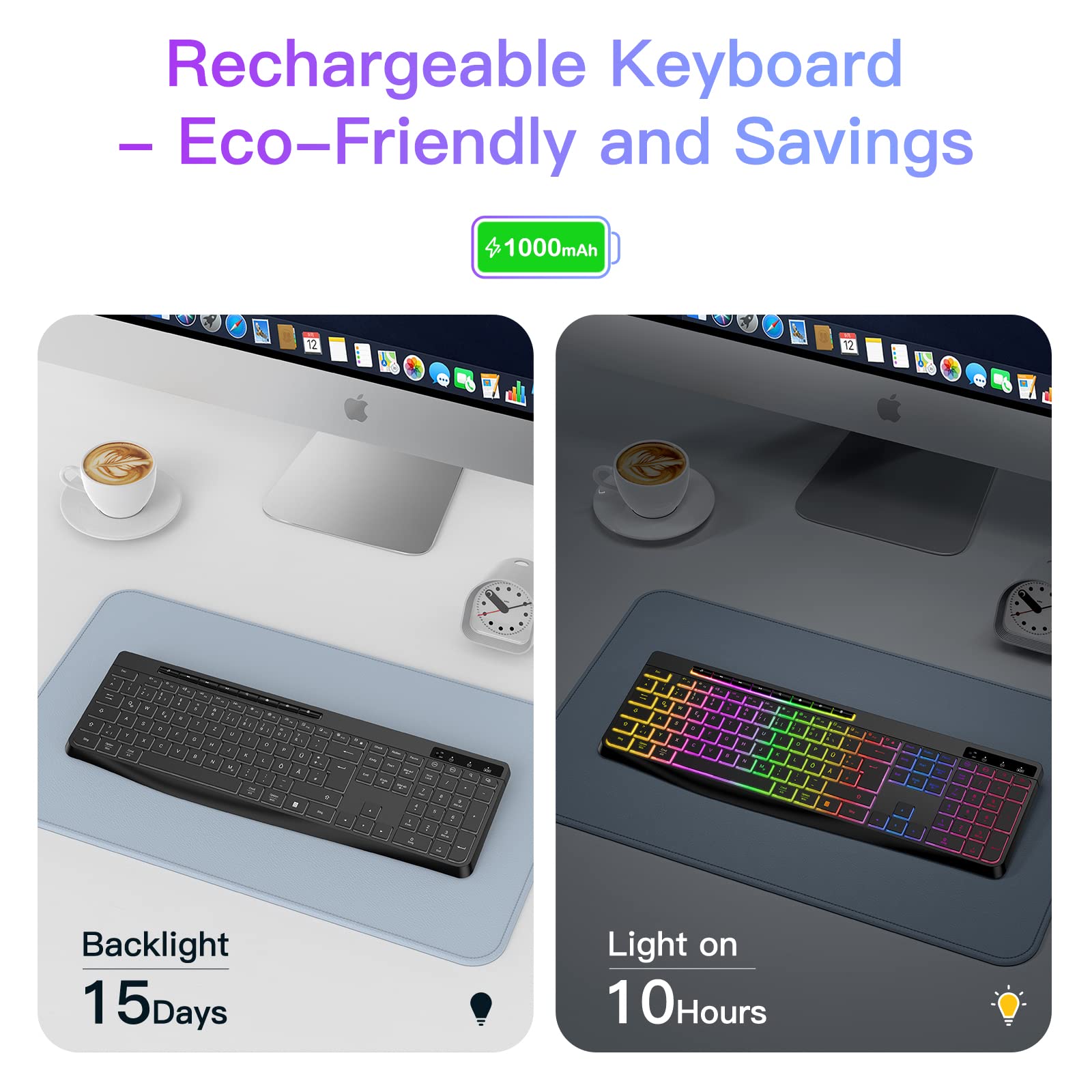 - Silent-Tasten: Die Tastatur verfügt über Silent-Tasten, die für ein leises und angenehmes Tippgeräusch sorgen, das Sie und Ihre Mitbewohner nicht stört