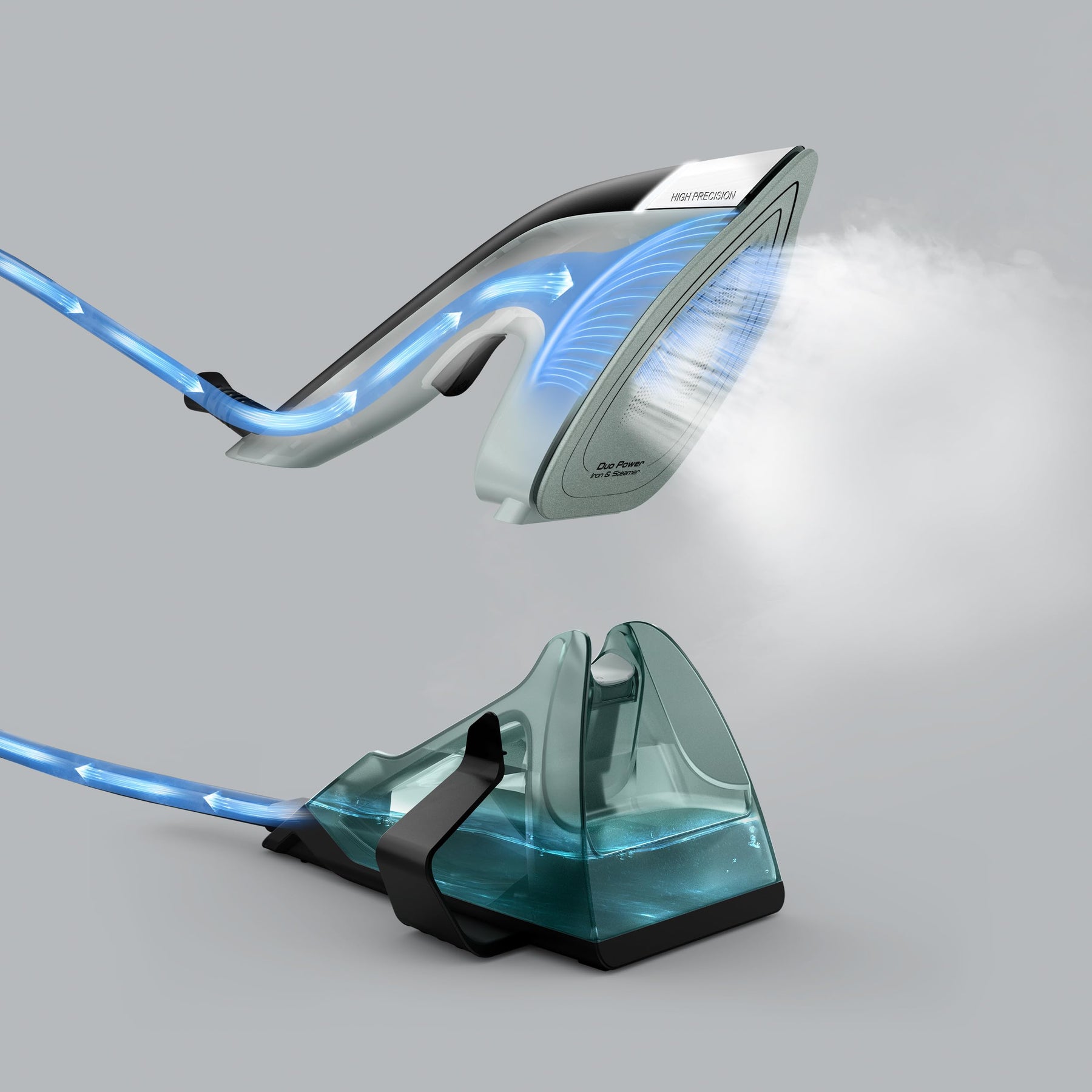 • BESONDERE DAMPFLEISTUNG: Bügeln oder glätten Sie Ihre Kleidung mit einer variablen Dampfmenge von 25 g/Min. und entfernen Sie hartnäckigere Falten mit einem zusätzlichen Dampfstoß von 100 g/Min.