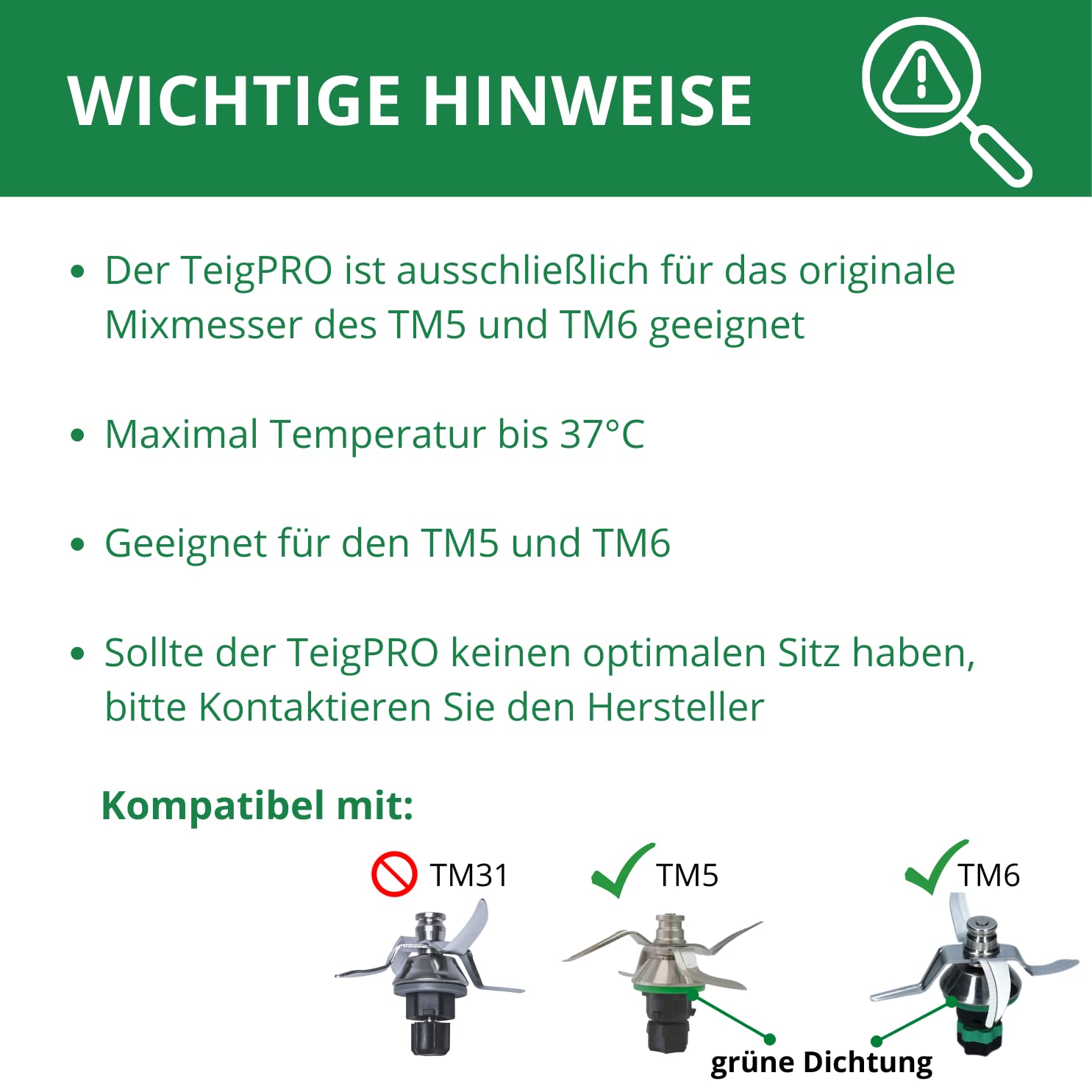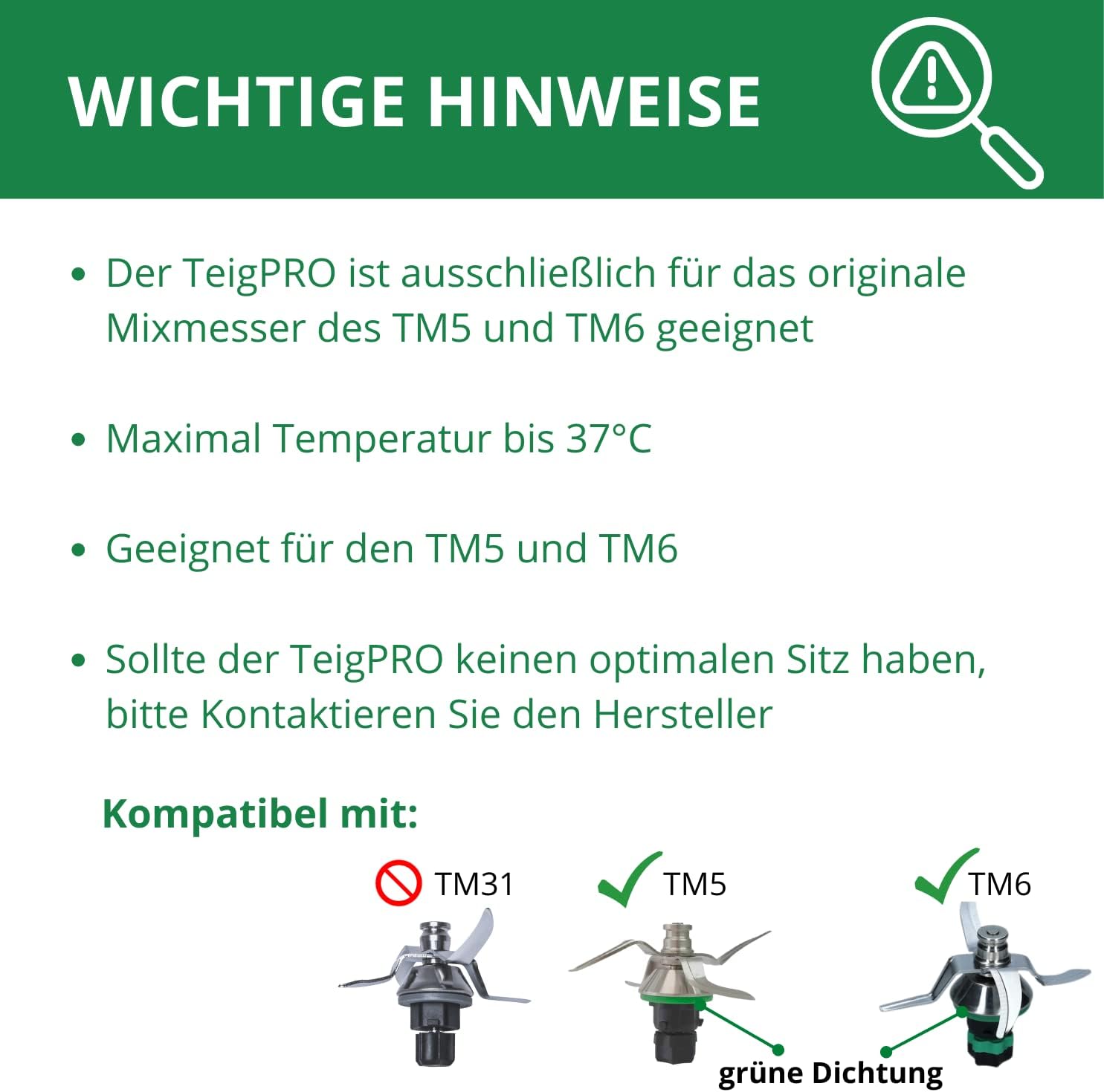• ✅ Der TeigPRO ist mit dem TM5 / TM6 kompatibel und ist das perfekte Thermomix-Zubehör für optimale Teigergebnisse.