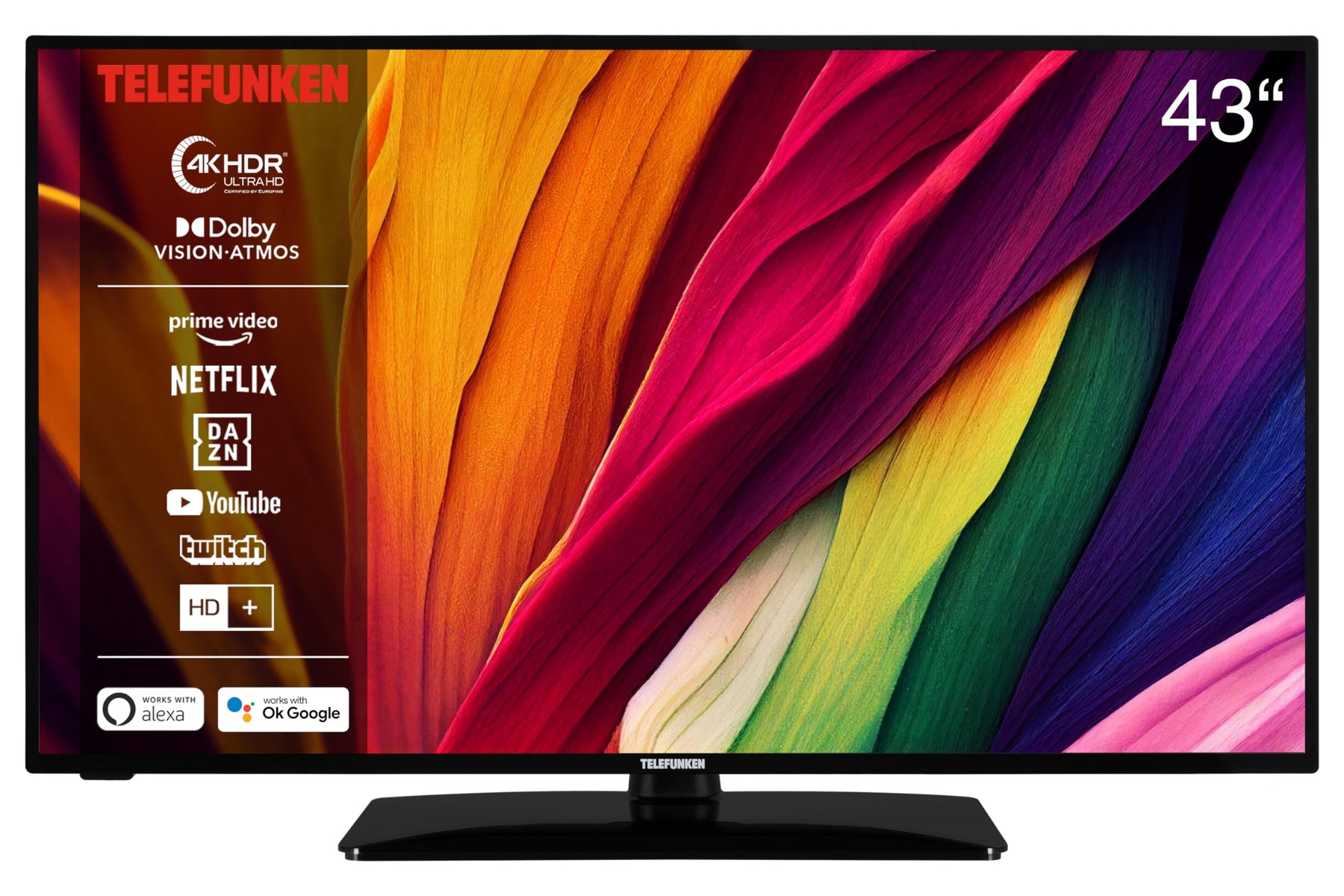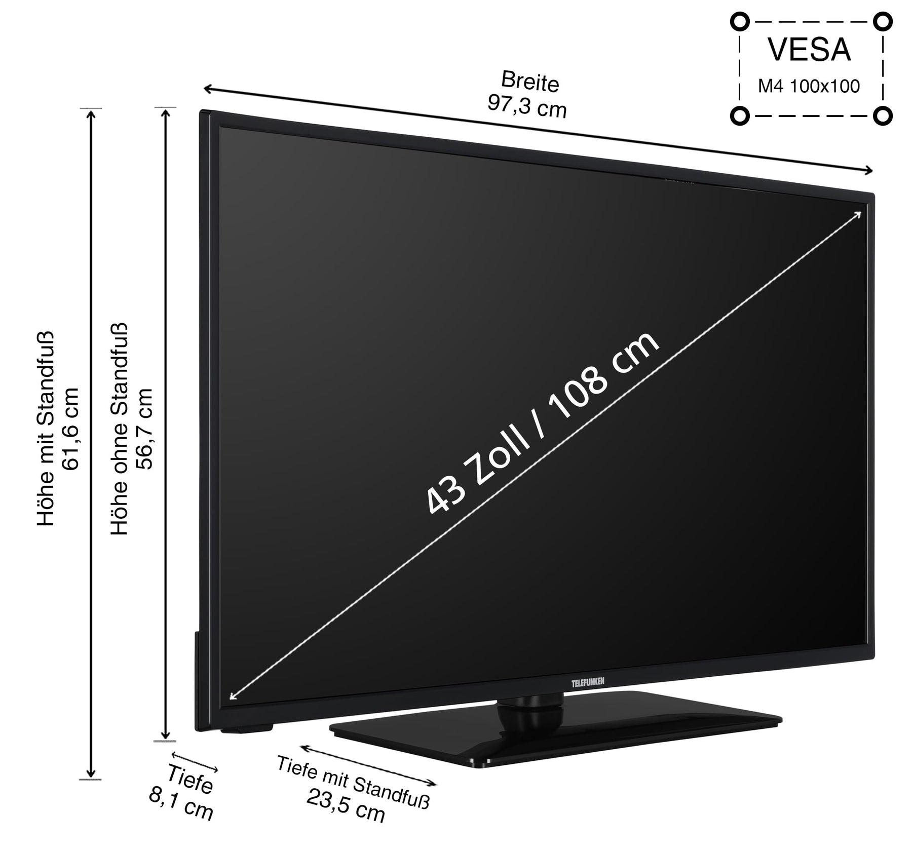 - MEHR ALS NUR EIN FERNSEHER - Der Flachbildschirm verfügt über eine Bildschirmdiagonale von 108 cm (43 Zoll). Über den integrierten Triple-Tuner empfangen Sie Fernsehen über Antenne (DVB-T2), Kabel (DVB-C) oder Satellit (DVB-S2) direkt auf dem Fernsehgerät. Ein zusätzlicher Receiver wird nicht benötigt.