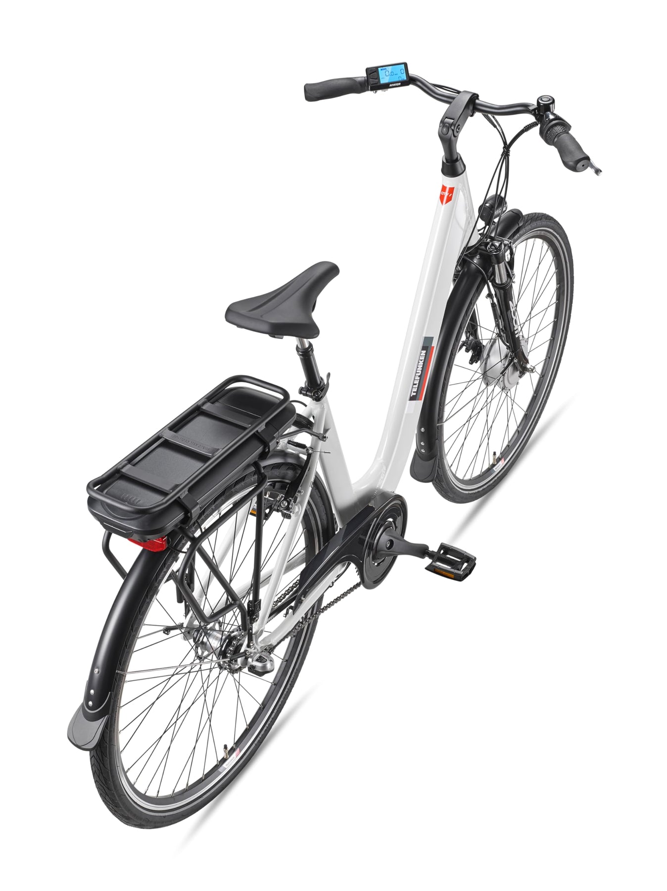 - Reichweite: Die Kombination aus integriertem Mittelmotor mit 250 Watt und hochwertigem Li-Ion-Akku sorgt bei bis zu 25 km/h für Tretunterstützung mit einer Reichweite von bis zu 100 km; 13 Ah / 36V Lithium-Ionen-Akku