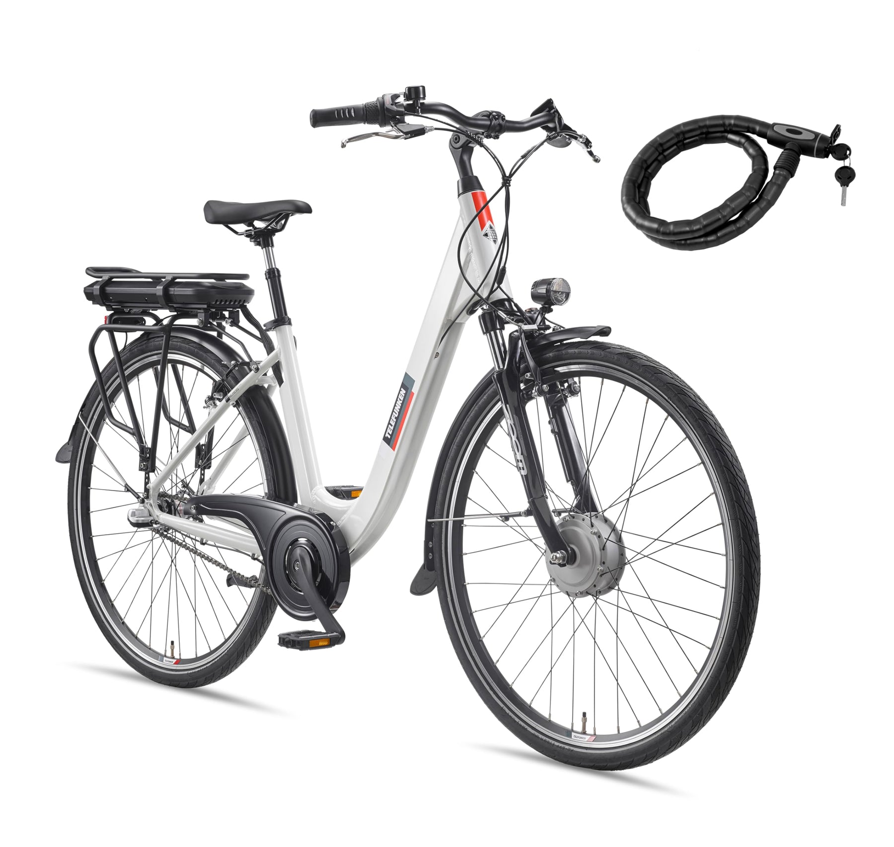 - Sicherheit: Das Ebike ist nicht zulassungspflichtig und bietet die vollständige Ausstattung nach StVZO (LED-Beleuchtung und Reflexbereifung) - Felgenbremsen sorgen für Sicherheit. Dazu erhalten Sie ein stabiles Panzerkabelschloss.