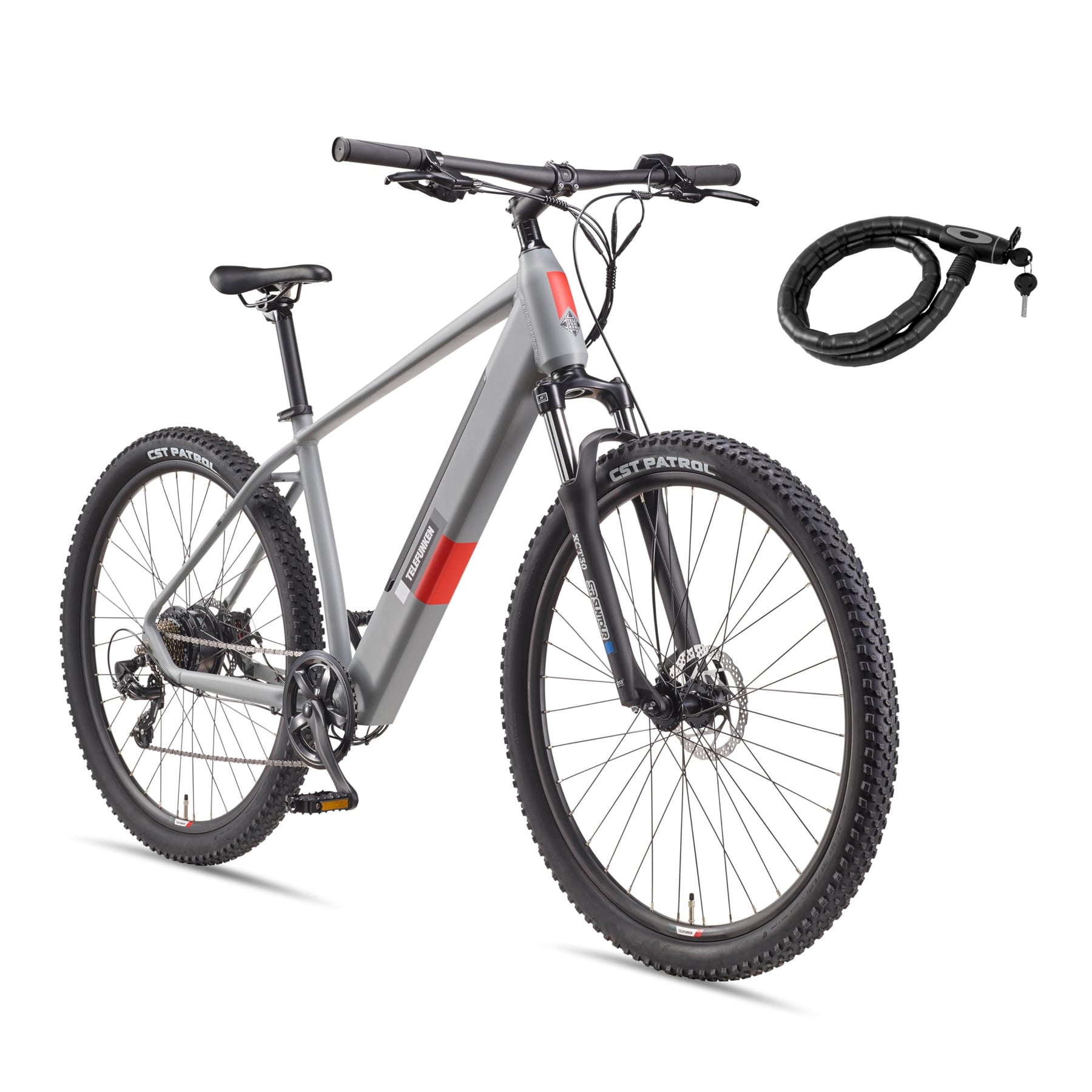 • SICHERHEIT - Das E-Mountainbike ist nicht zulassungspflichtig und wird zu 98% montiert angeliefert - Scheibenbremsen vorne und hinten sorgen für Sicherheit. Dazu erhalten Sie ein stabiles Panzerkabelschloss (1,2 m)