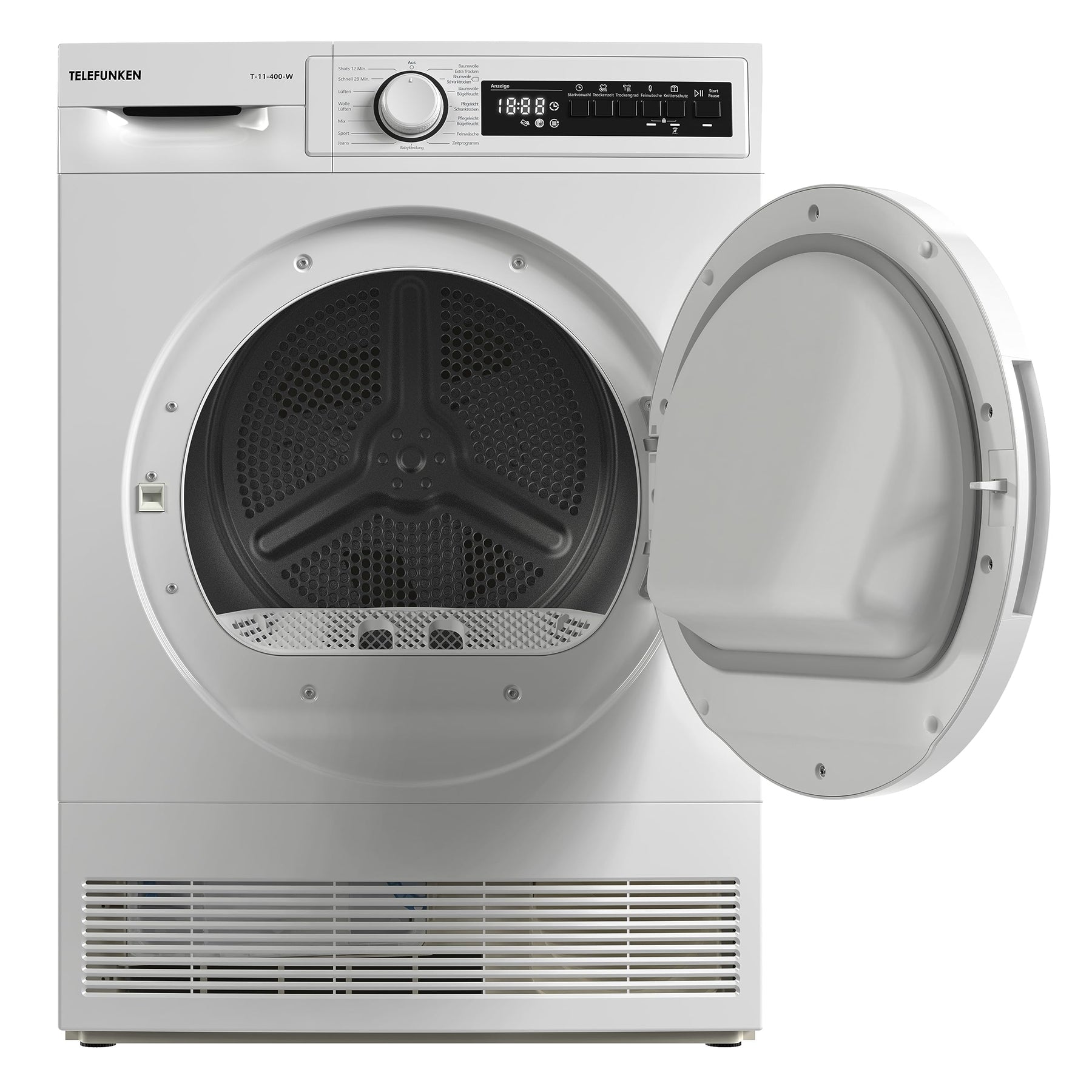 Telefunken T-11-400-W Kondenstrockner / 7kg Trockner mit 15 Programmen, Startzeitvorwahl, Knitterschutz & reversierenden Trommelbewegungen, weiß