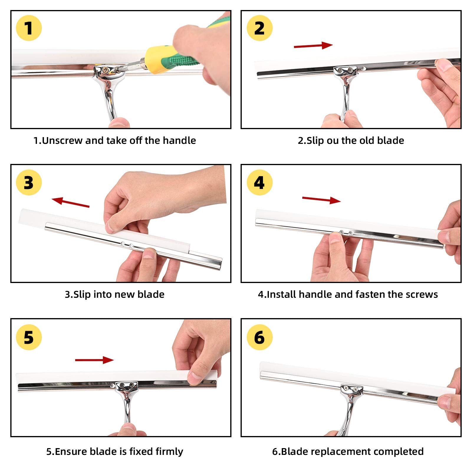 - 【Sie Erhalten】1 x Duschabzieher, 1 x Anschließen, 2 x Ersatzlippe, 1 x Bedienungsanleitung. Die zusätzlichen 2 Silikonlippen verlängern die Lebensdauer des Glasschabers. Sie müssen ihn nur durch einen Schraubendreher ersetzen