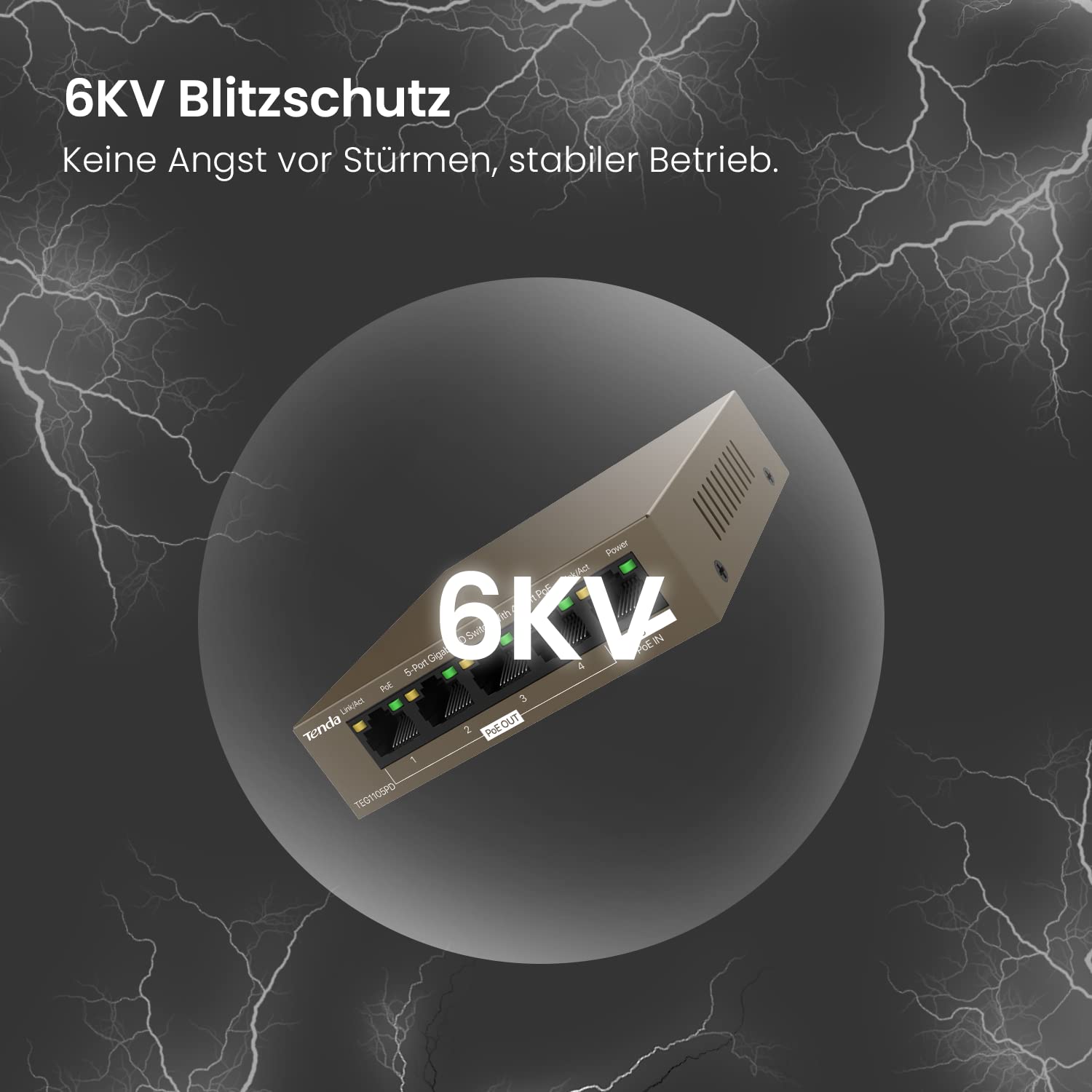 • 【PoE-PD & PoE-PSE】TEG1105PD PoE Switch ist ein PoE powered Switch mit 4 10/100/1000 Mbit/s PoE-PSE-Ports und einem 10/100/1000 Mbit/s PoE-PD-Port; PoE-PD-Port unterstützt PoE-Standards IEEE 802.3af/at; 4 PoE-PSE-Ports mit 25W Gesamtleistungsbudget unterstützen PoE-Standard IEEE802.3af; TEG1105PD kann nur IEEE802.3af-Geräte mit Strom versorgen, keine passiven PoE-Geräte