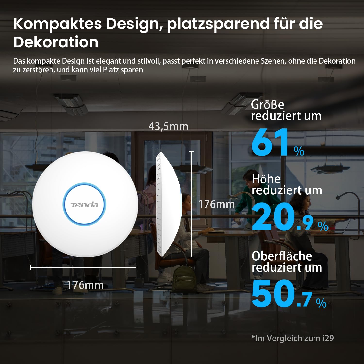 - 【Kompaktes Design】Das kompakte Design von Ø176*43,5 mm sorgt für eine einfache Installation und spart gleichzeitig Platz. Das elegante Erscheinungsbild macht den i27 perfekt für jedes moderne Büro, Hotel, Café und Zuhause, ohne die Einrichtung zu beeinträchtigen