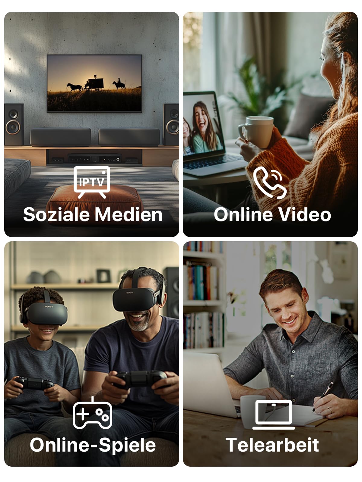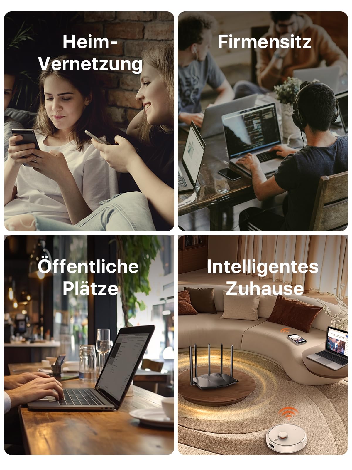 - 【Sicheres Netzwerk】 WPA3, die neue Generation von WiFi-Sicherheitsstandards, die die Netzwerksicherheit erheblich verbessert, Netzwerkangriffe effektiv stoppen und die Informationen des Heimnetzwerks sicherer machen kann