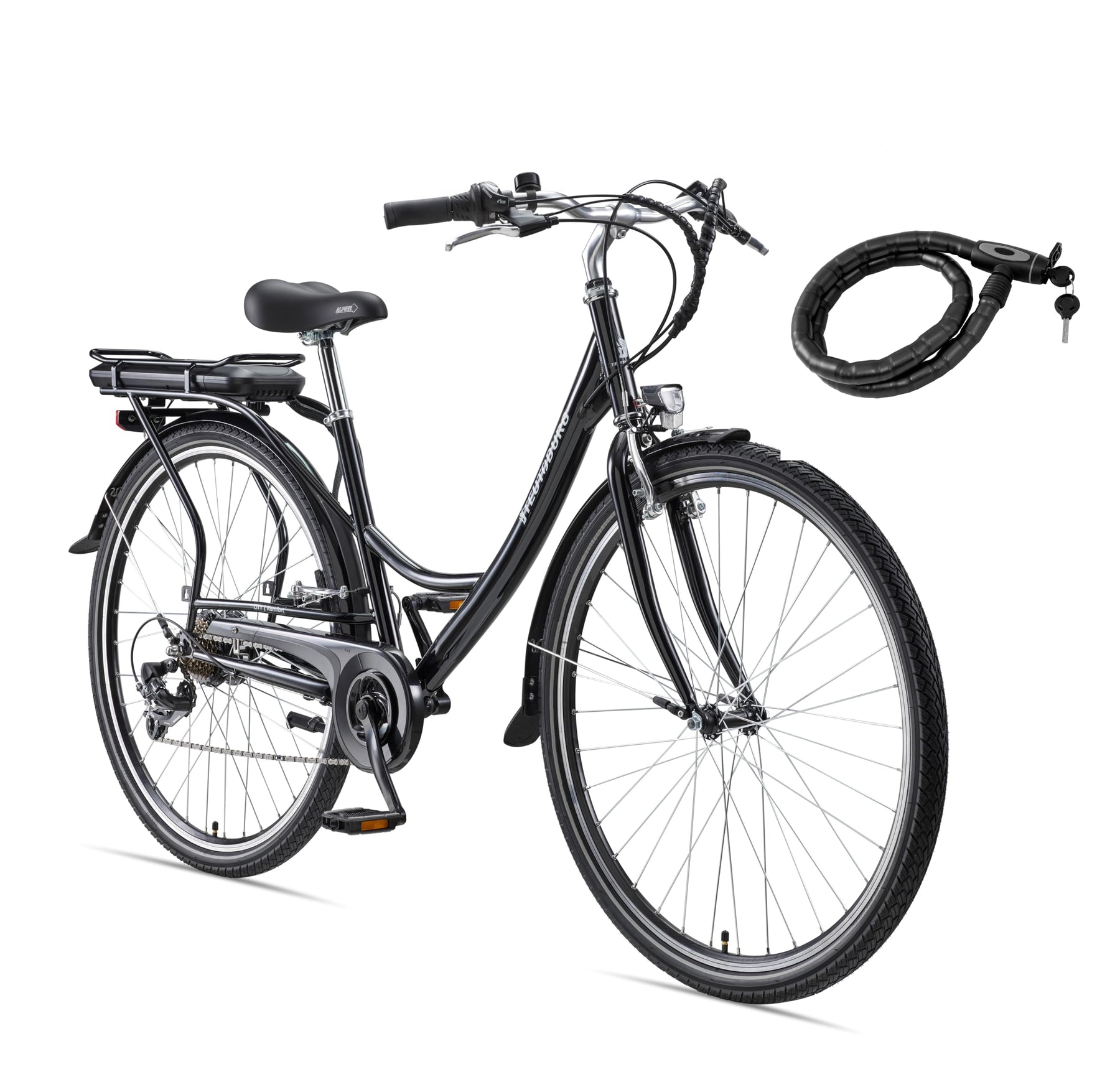 Teutoburg Senne Fahrrad Pedelec Citybike Elektrofahrrad schwarz, E-Bike 28 Zoll, 10,4 Ah/36V Lithium Ionen Akku, 7-Gang Kettenschaltung, inkl. Panzerkabelschloss