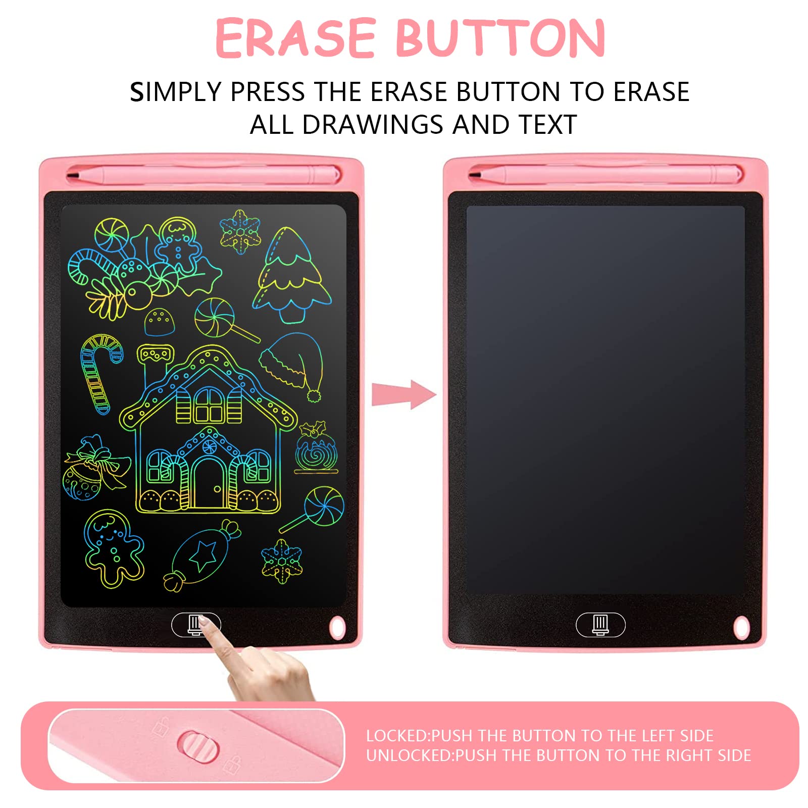 - 💗【DIE VERRIEGELUNGSFUNKTION】- Diese Schreibtabletts sind druckempfindlich, mit denen Sie bunte Linien unterschiedlicher Dicke zeichnen können, je nachdem, wie viel Kraft Sie anwenden. Der 12-Zoll-Bildschirm aus Gekritzel bietet ausreichend Platz für Graffiti, und hier ist eine Taste zum Sperren oder Löschen des Bildschirms, um ein versehentliches Löschen zu verhindern, schützen Sie Ihre Kreation! Drücken Sie die Löschtaste, um den Bildschirm zu reinigen.