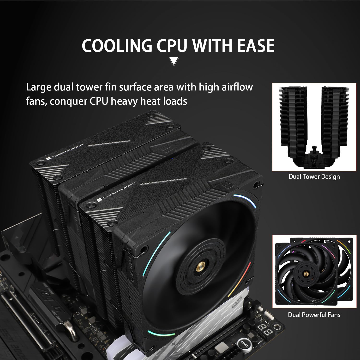 • 【Vorteil der Wärmeableitung】 Eloxierte, gebürstete schwarze obere Abdeckung + Heatpipes mit Vollbeschichtung + mikrogravierter Reflow-Kupferboden + doppelte Lüfter, die das Design verwenden, um Speicherschnitte zu vermeiden, nicht nur schöne und bessere Wärmeableitungsfunktion, eingestellt für CPU-Kühlung