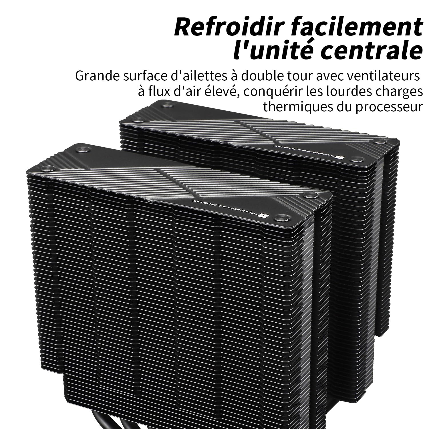 - 【Gesamtverfeinerung】 Der CPU-Radiator verwendet ein anodisches schwarzes mattiertes Verfahren, die Zwillingstürme des Kühlerkörpers weisen eine mattierte Textur mit 7 vollständig plattierten und geschwärzten Heatpipes sowie einem präzisionsmikrogravierten Reflow-gelöteten Kupfersockel auf, der die Gesamtleistung des Radiators erheblich verbessert. Der Verzicht auf die Behandlung der Grafikkarte ermöglicht eine größere Kompatibilität des CPU-Kühlers.