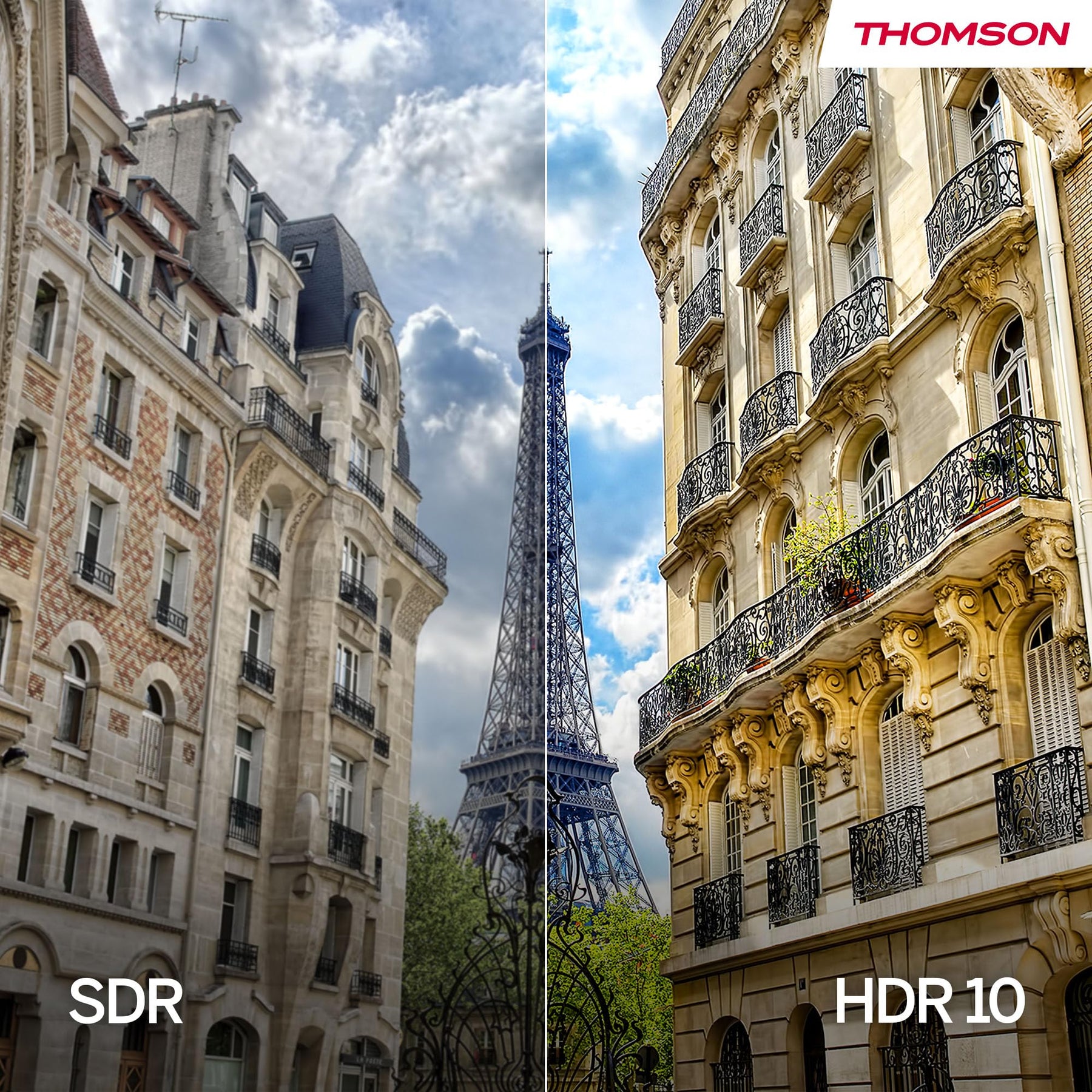 Einzelheiten: Rüsten Sie Ihr Home-Entertainment mit dem Thomson Fire TV 43" UHD auf – wo innovative Smart-Funktionen auf leistungsstarke Bild- und Tonqualität treffen. Ob Streaming, Gaming oder Live-TV: Dieser Smart-TV bietet ein herausragendes Unterhaltungserlebnis, das perfekt auf Ihren Lebensstil abgestimmt ist. Genießen Sie die gestochen scharfe Klarheit der 4K-UHD-Auflösung – mit viermal mehr Details als Full HD. Dank HDR10 erwachen Szenen mit lebendigen Farben, höherem Kontrast und ausgewogener Helligkeit zum Leben. Dolby Vision verbessert zusätzlich Helligkeit und Farbgenauigkeit und sorgt so für atemberaubend realistische Bilder, während Dolby Atmos einen satten, multidimensionalen Klang liefert – für ein vollständig immersives Seherlebnis. Das intuitive Fire TV Betriebssystem ermöglicht den nahtlosen Zugriff auf Ihre Lieblings Streamingdienste, Apps und Spiele – alles über eine benutzerfreundliche Oberfläche. Erstellen Sie mehrere Benutzerprofile für personalisierte Empfehlungen und Einstellungen – ideal für Familien oder Wohngemeinschaften. Dank integrierter Alexa-Sprachsteuerung können Sie Inhalte suchen, Apps starten oder Ihre Smart-Home-Geräte allein mit Ihrer Stimme bedienen. Mit Apple AirPlay streamen Sie Inhalte direkt von Ihrem iPhone, iPad oder Mac. Über das Smart Home Dashboard behalten Sie die volle Kontrolle über alle verbundenen Geräte in Ihrem Zuhause. Vielseitige Anschlussmöglichkeiten wie mehrere HDMI- und USB-Ports sowie ein CI+-Slot für verschlüsselte digitale TV-Sender sorgen für optimale Konnektivität. Der integrierte Triple-Tuner (DVB-C/S2/T2) ermöglicht den Empfang von Kabel-, Satelliten- und Antennensignalen. Die Navigation gelingt mühelos mit der Bluetooth-Sprachfernbedienung, die Direktwahltasten für Netflix, Prime Video, Amazon Music und Alexa bietet – so ist Ihre Unterhaltung immer nur einen Klick entfernt.