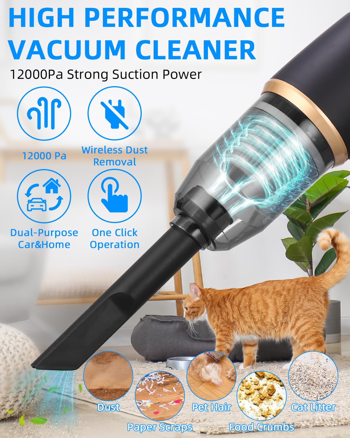 • KRAFTVOLLE SAUGLEISTUNG: Akku Handstaubsauger hat eine starke Saugleistung mit einer maximalen Drehzahl von 120000 U/min.Der handstaubsauger kabellos entfernt mühelos hartnäckigen Staub aus Ihrem Auto oder Ihrer Wohnung und eignet sich hervorragend für die tägliche Reinigung von Haaren und Staub