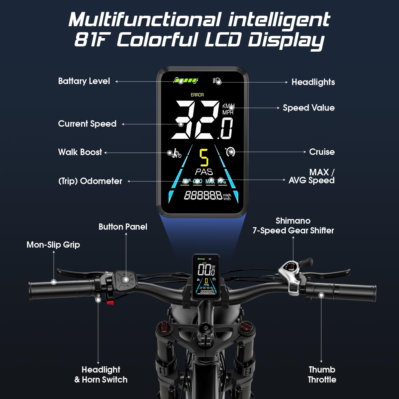 - (Motor) Das E-Bike für Erwachsene ist mit einem bürstenlosen Hochfrequenzmotor und einem enormen Drehmoment von 90 Nm ausgestattet, das Ihnen genug Kraft bietet, um Hügel zu erklimmen!