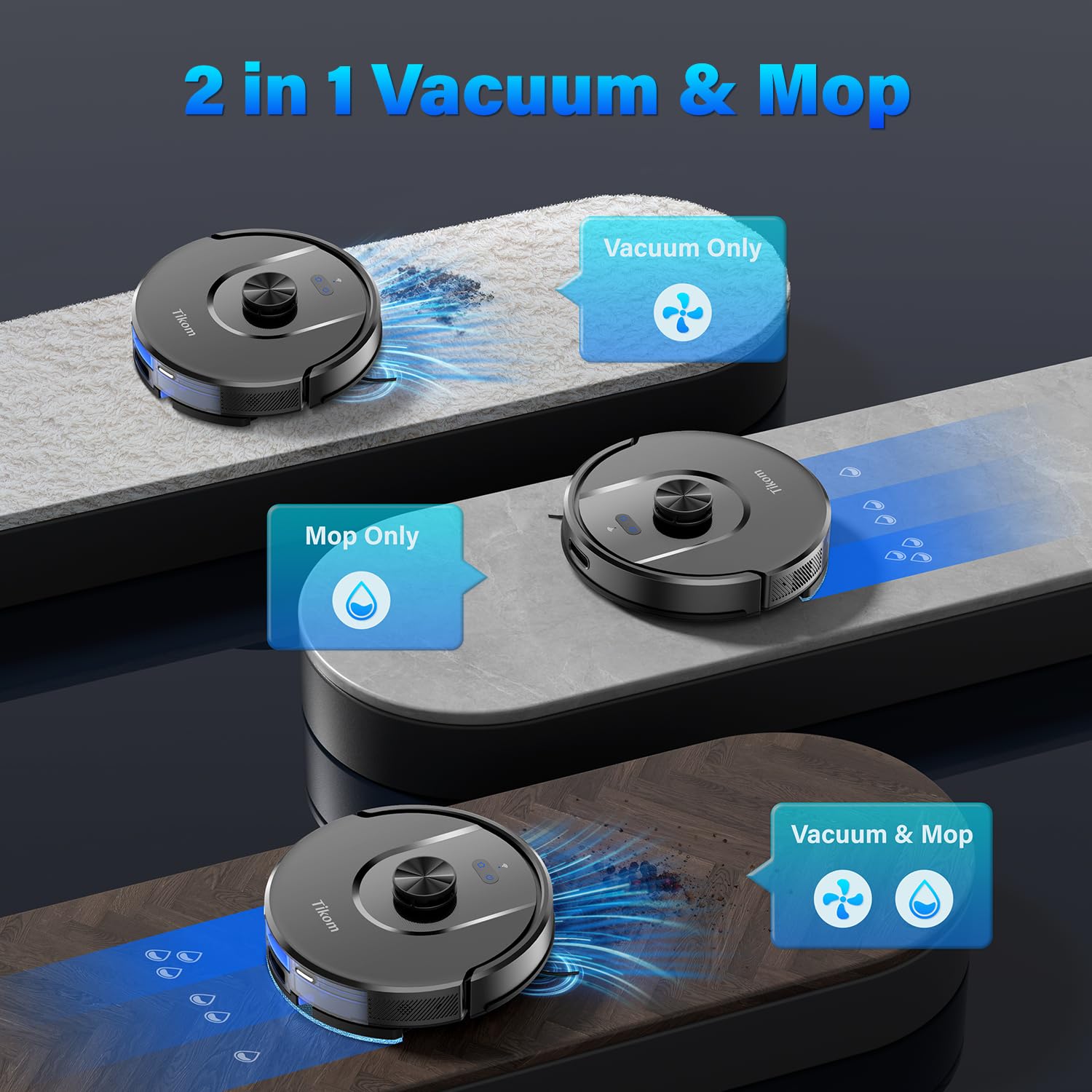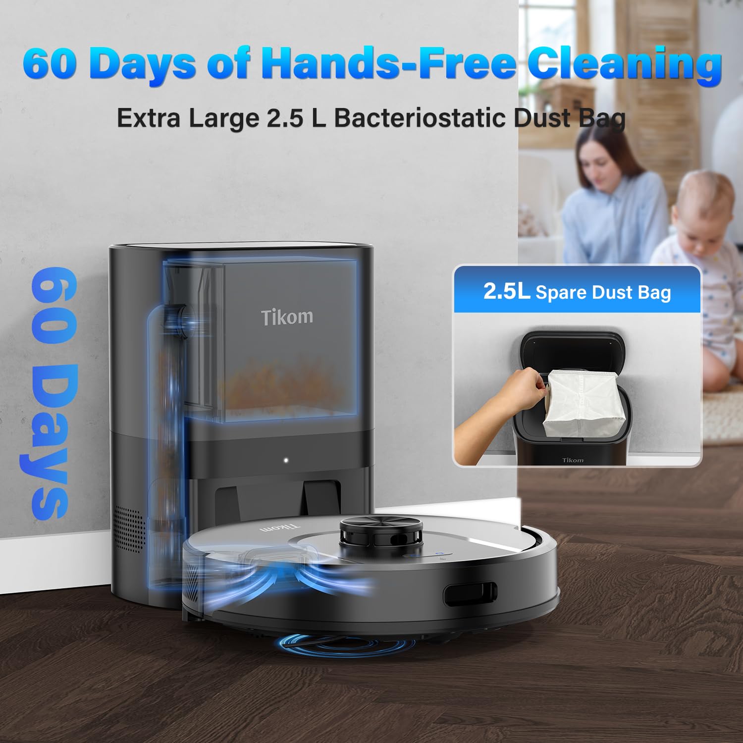 Tikom 5000 Pa Saugroboter mit Wischfunktion, L8000 Plus LiDAR-Navigation Roboterstaubsauger, 2.5L Absaugstation, 60-Tage Freihändig, 150 Min, App Steuerung Gut für Tierhaare Teppich Hartboden