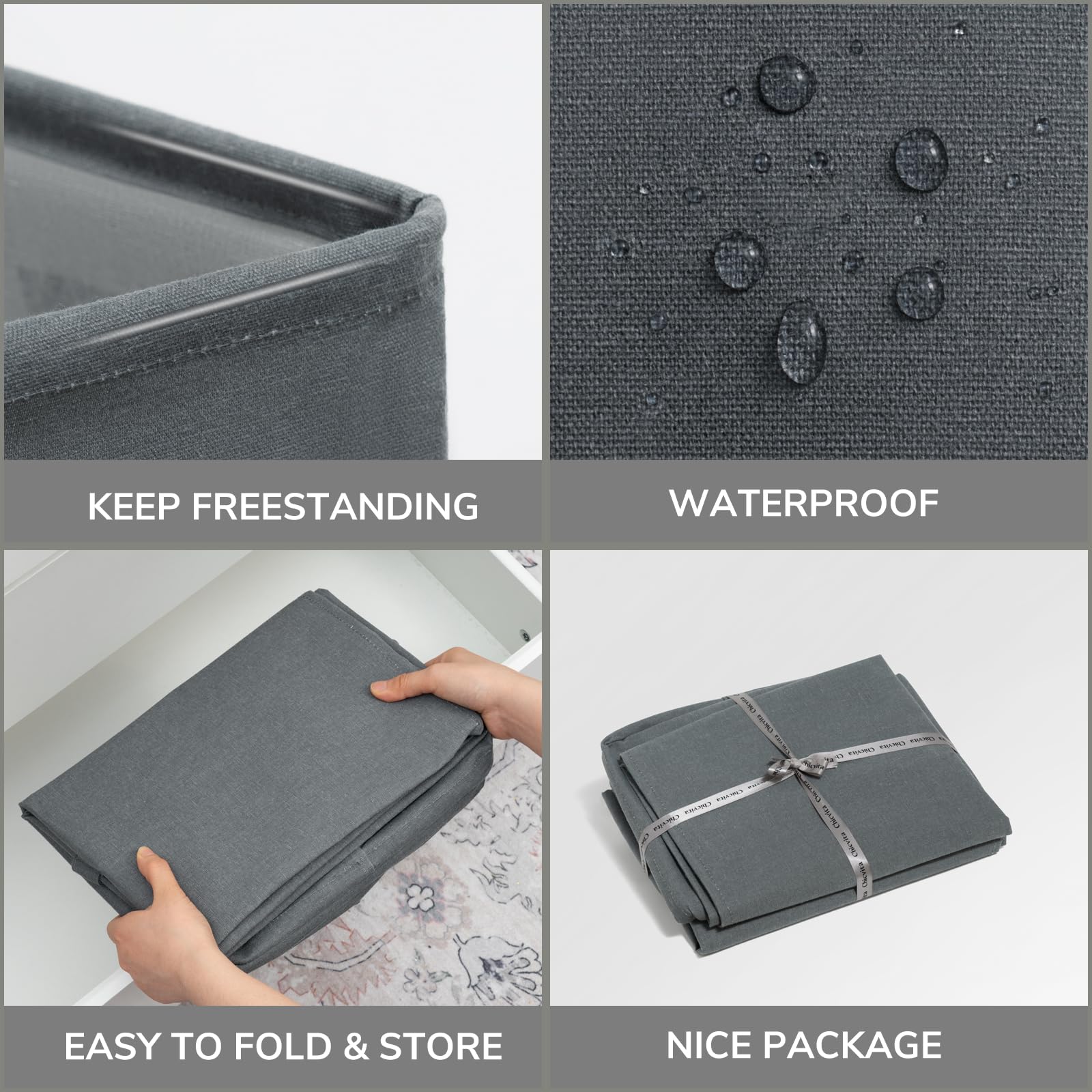 • Wasserdichter Wäschekorb. Der Wäschekorb besteht aus Canvas-Material und der Innenstoff des Wäschekorbs ist mit PE-Material beschichtet, um die Kleidung trocken zu halten. Leicht zu reinigen, einfach den Schmutz mit einem feuchten Schwamm oder Tuch abwischen. HINWEIS: Diese Beschichtung ist nicht waschmaschinenfest. Wäschekörbe können nicht gebügelt oder gebleicht werden