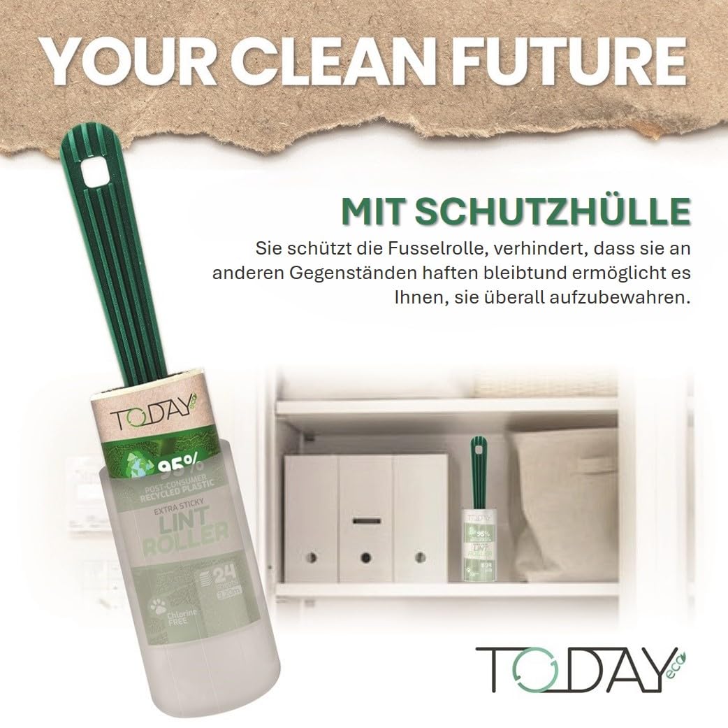 - [ ÖKOLOGISCH ]: Fussel- und Haarentfernungsroller aus hochwertigem, zu 95 % recyceltem Kunststoff aus Post-Consumer-Materialien. 100 % umweltfreundliches, chlorfreies Papiermaterial.