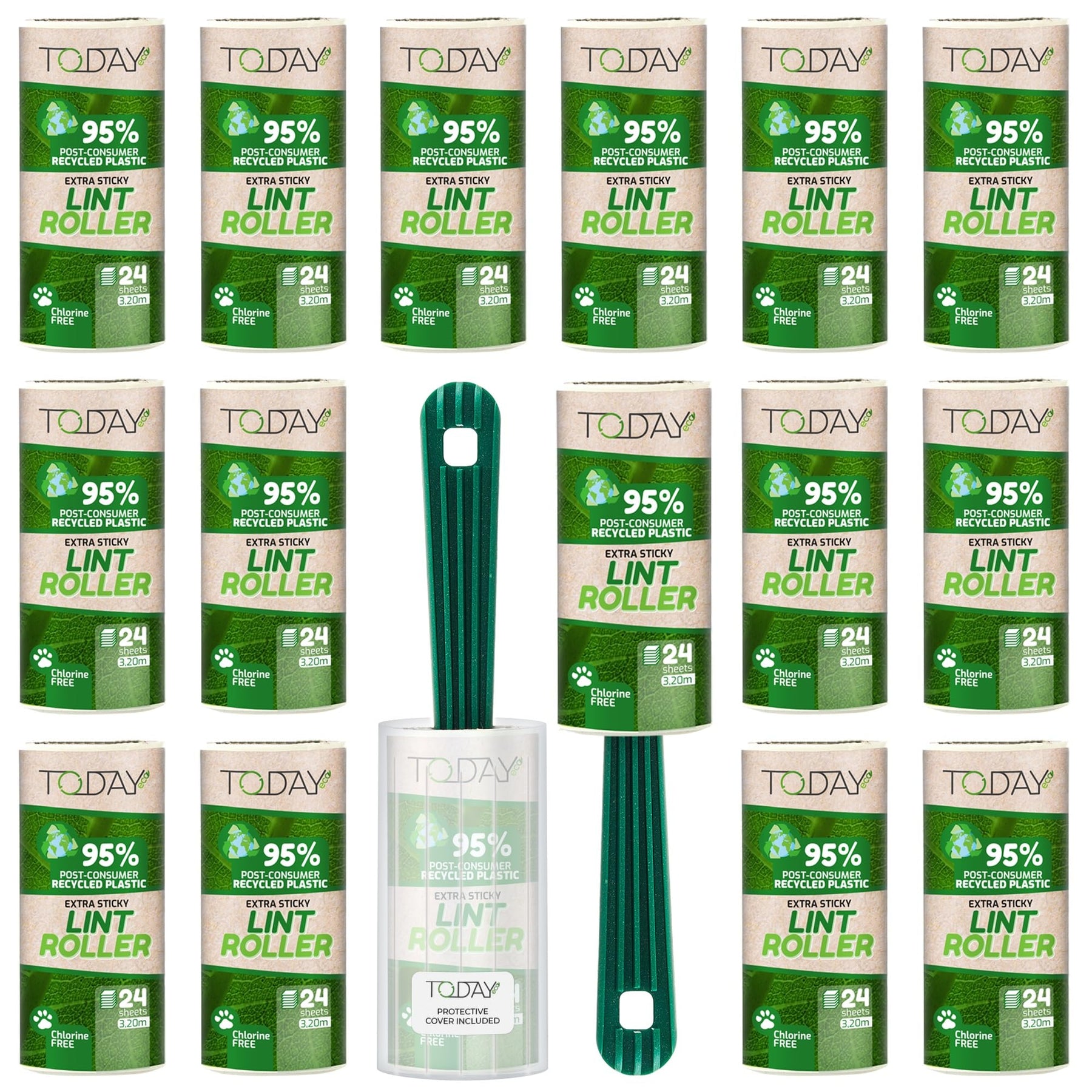 - [ EFFIZIENT ]: Extra-klebriger Fussel-Entferner für die manuelle Entfernung aller Arten von Haaren, Fusseln, Staub und Schmutz. Rolle mit vorgeschnittenen diagonalen Klebestreifen zum schnellen und einfachen Entfernen. 24 Blätter pro Rolle für eine lange Nutzung
