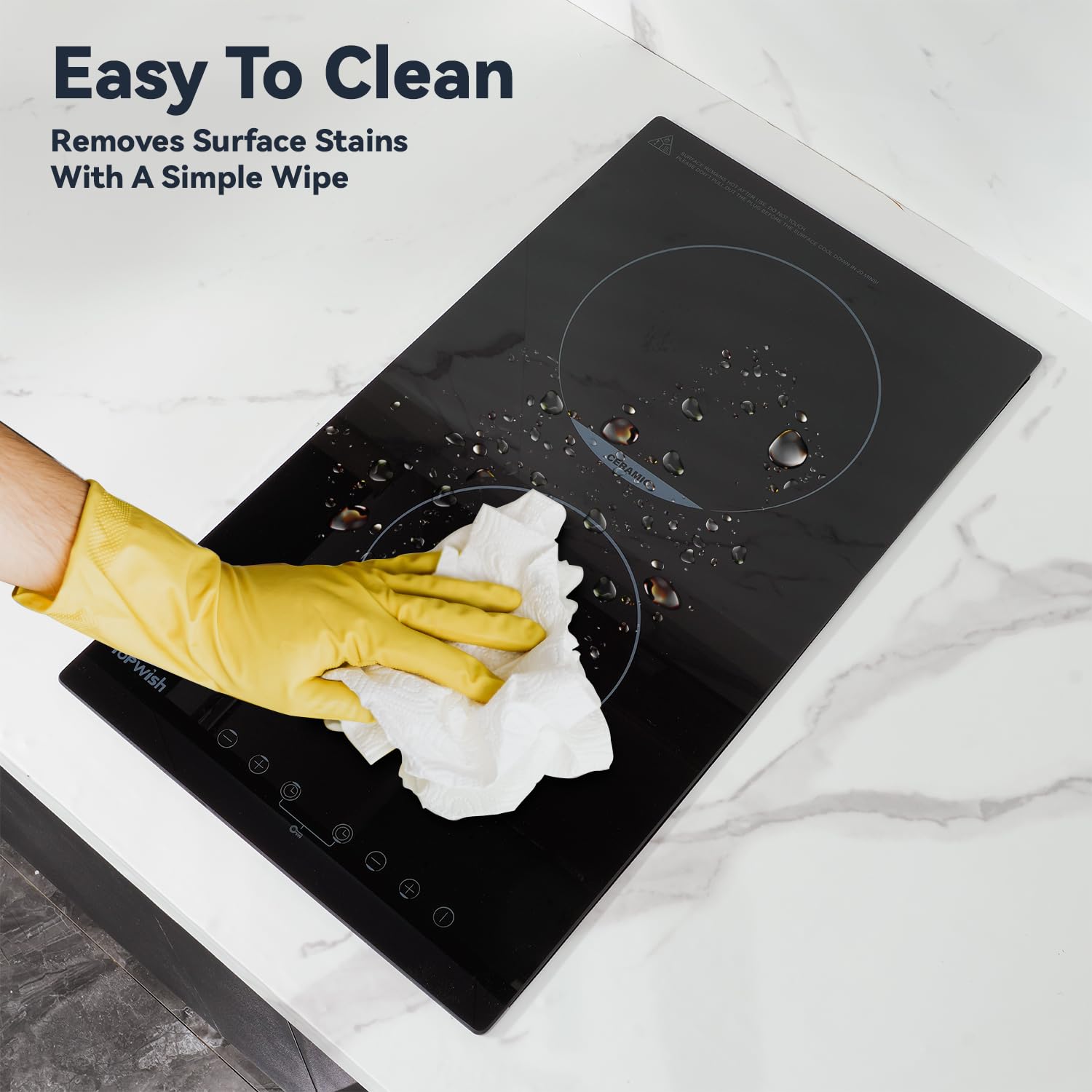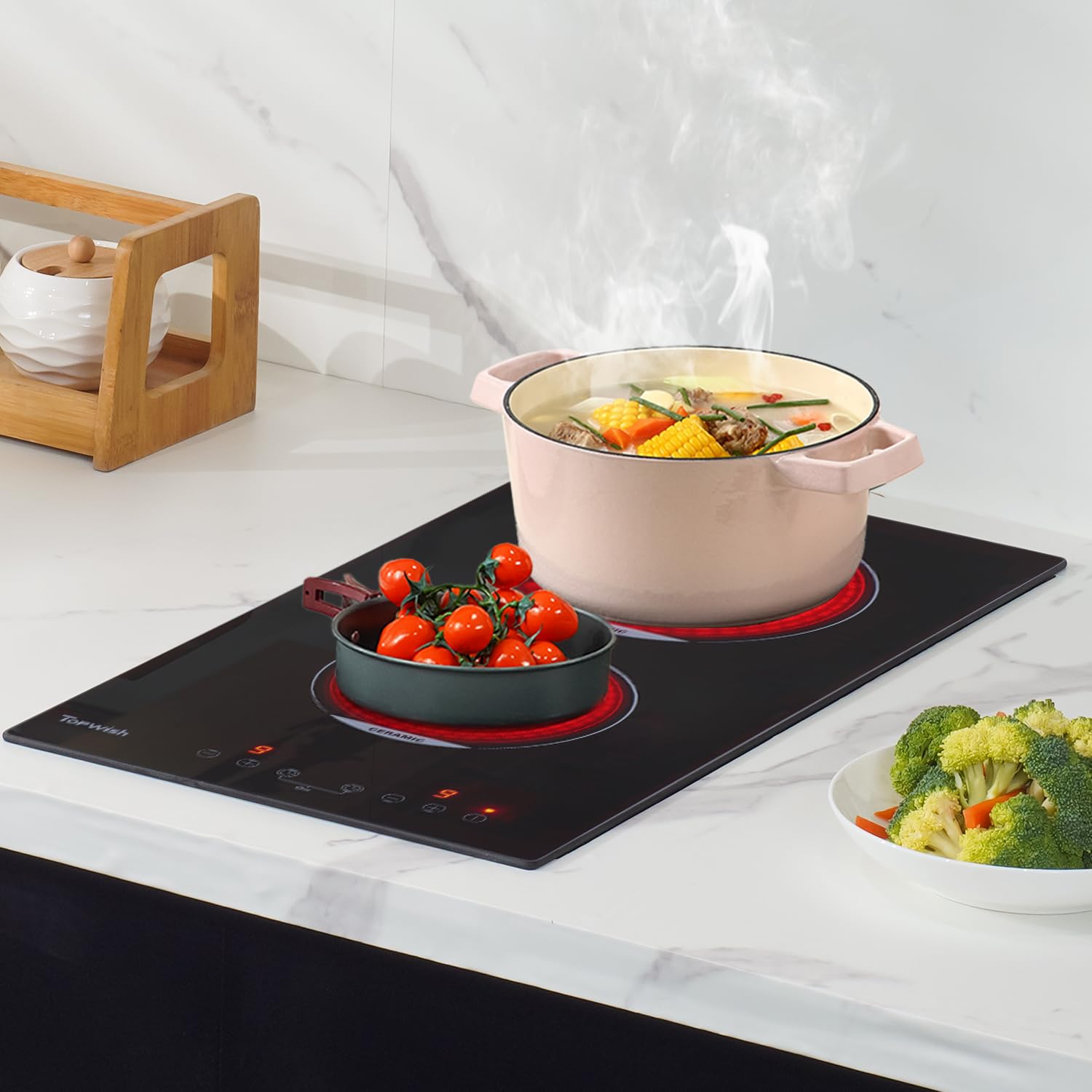 Topwish Glaskeramikkochfeld, 2 Zonen Keramikkochfeld, Elektroherd, integriertes elektrisches Kochfeld, Einbaukochfeld mit 9 Stufen, Kindersicherung, Touchsteuerung, Restwärmeanzeige, Timer, 29 * 52cm
