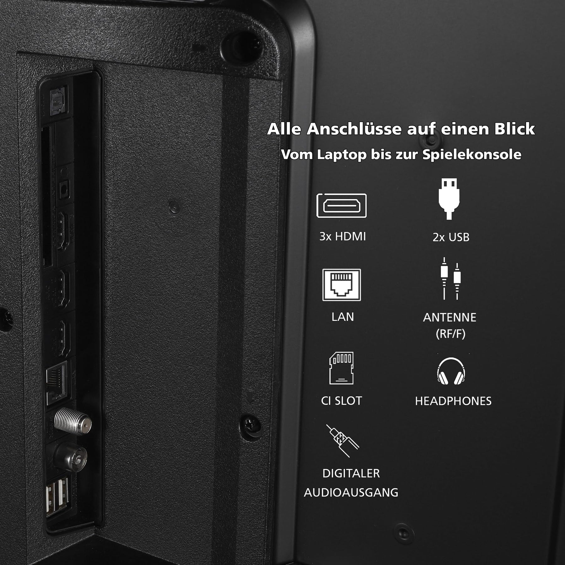 - MEHR ALS NUR EIN FERNSEHER – Der Flachbildschirm verfügt über eine Bildschirmdiagonale von 108 cm (43 Zoll). Über den integrierten Triple-Tuner empfangen Sie Fernsehen über Antenne (DVB-T2), Kabel (DVB-C) oder Satellit (DVB-S2) direkt auf dem Fernsehgerät. Ein zusätzlicher Receiver wird nicht benötigt.