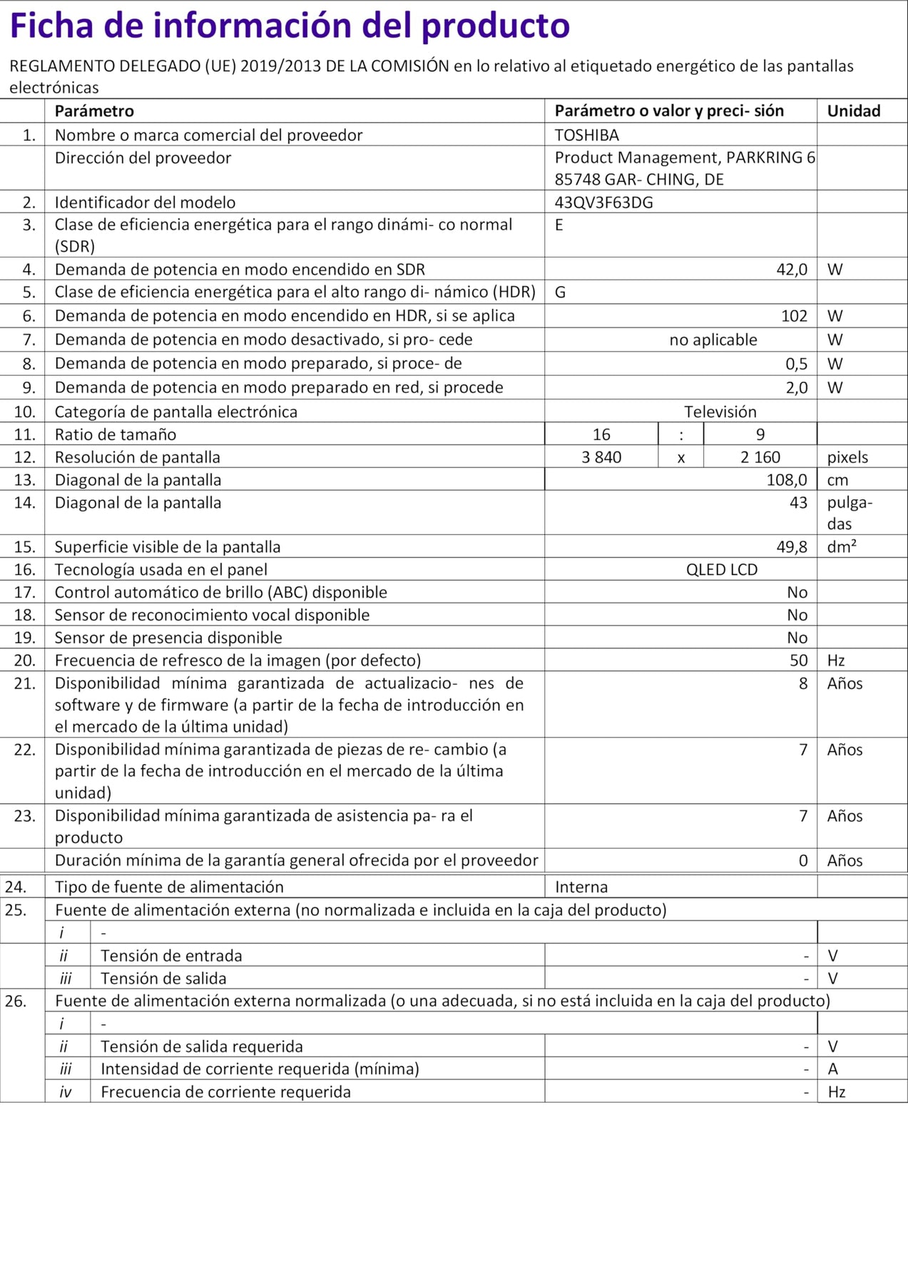 Einzelheiten: TOSHIBA 43QV3F63DG QLED Premium 43 Zoll 4K Ultra HD HDR10 Smart TV - (Quantum Dot, Dolby Vision und Atmos, Bluetooth, Gaming-Modus, Frameless Design)