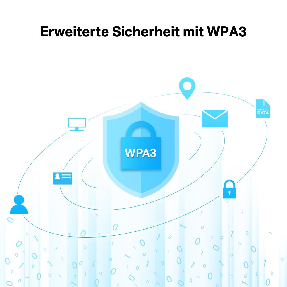 - Erweiterte Sicherheit mit WPA3 – stärkere Verschlüsselung in der WLAN-Passwortsicherheit und verbesserter Schutz vor Brute-Force-Angriffen schützen Ihr Heim-WLAN