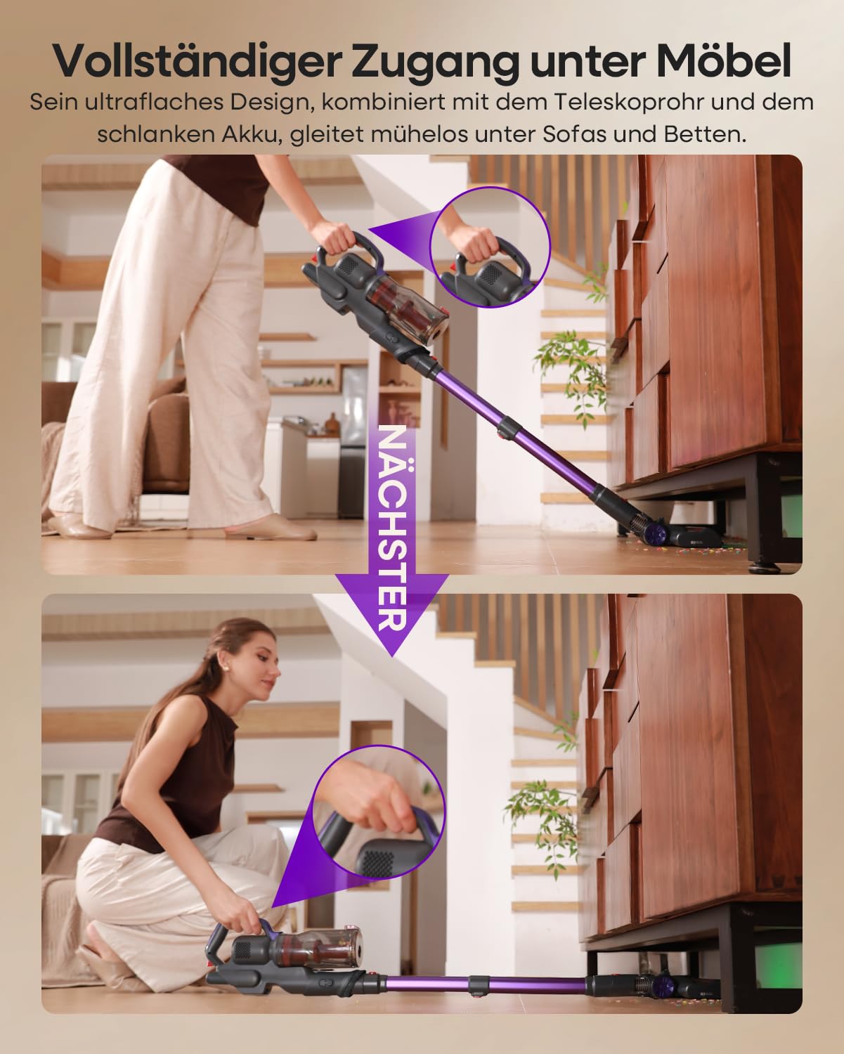 - 🔋【Lange Akkulaufzeit für das ganze Haus】Der Staubsauger Akku bietet bis zu 60 Minuten Laufzeit im Eco-Modus. Ideal für die Reinigung großer Wohnflächen ohne ständiges Nachladen. Die Akkulaufzeit wird je nach gewähltem Modus intelligent gesteuert.Der herausnehmbare Akku ermöglicht flexibles Laden und bei Bedarf den Austausch für noch längere Reinigungszeit.