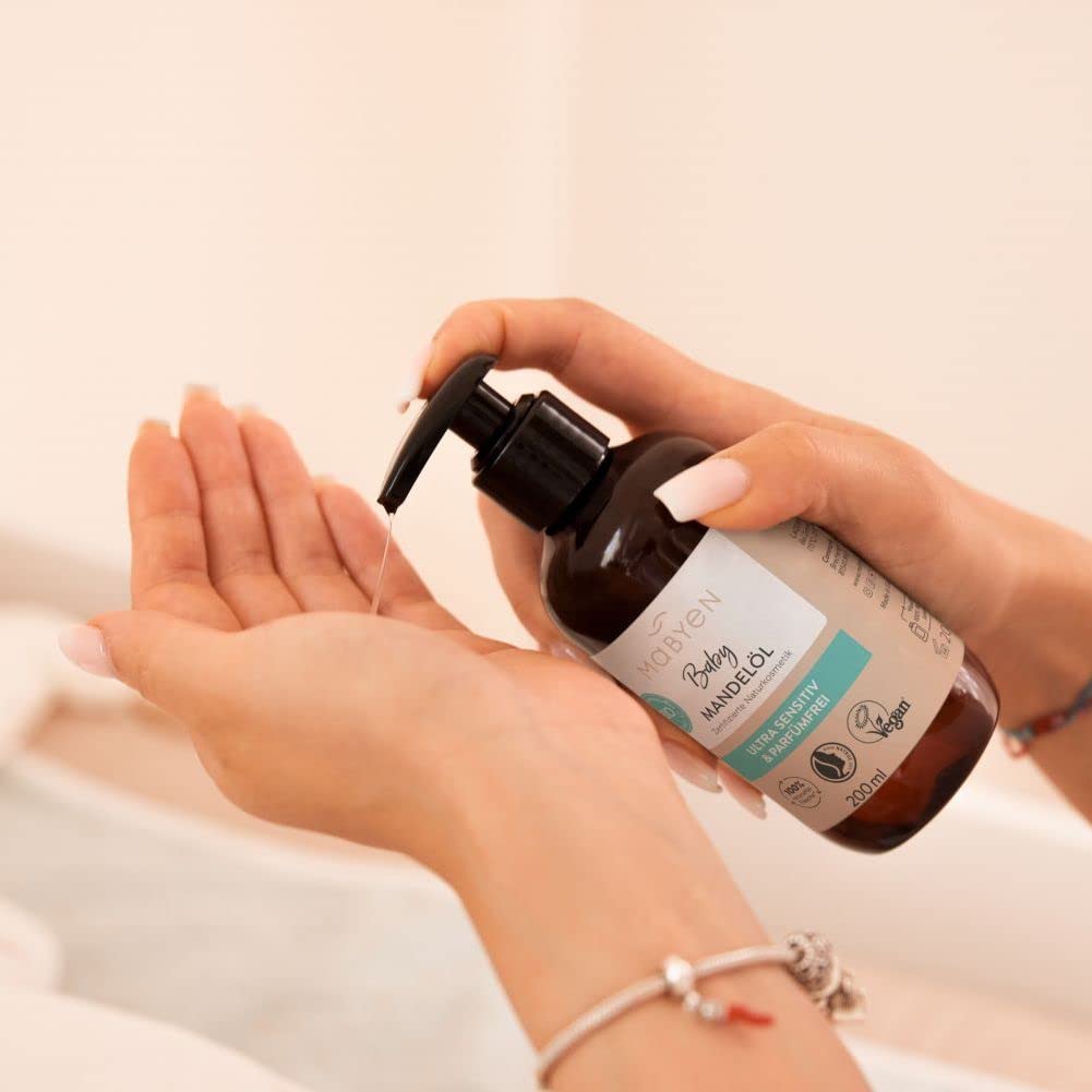 - NATÜRLICHE BIO-ÖLE: Unser parfümfreies und veganes Baby Pflegeöl Mandel mit wertvollen, natürlichen Bio-Ölen ist das Allround-Talent in der Babypflege und unser Must Have. Es eignet sich ideal zur Babymassage, sanften Reinigung und intensiven Pflege zarter Babyhaut. Für innige Momente mit deinem Baby.