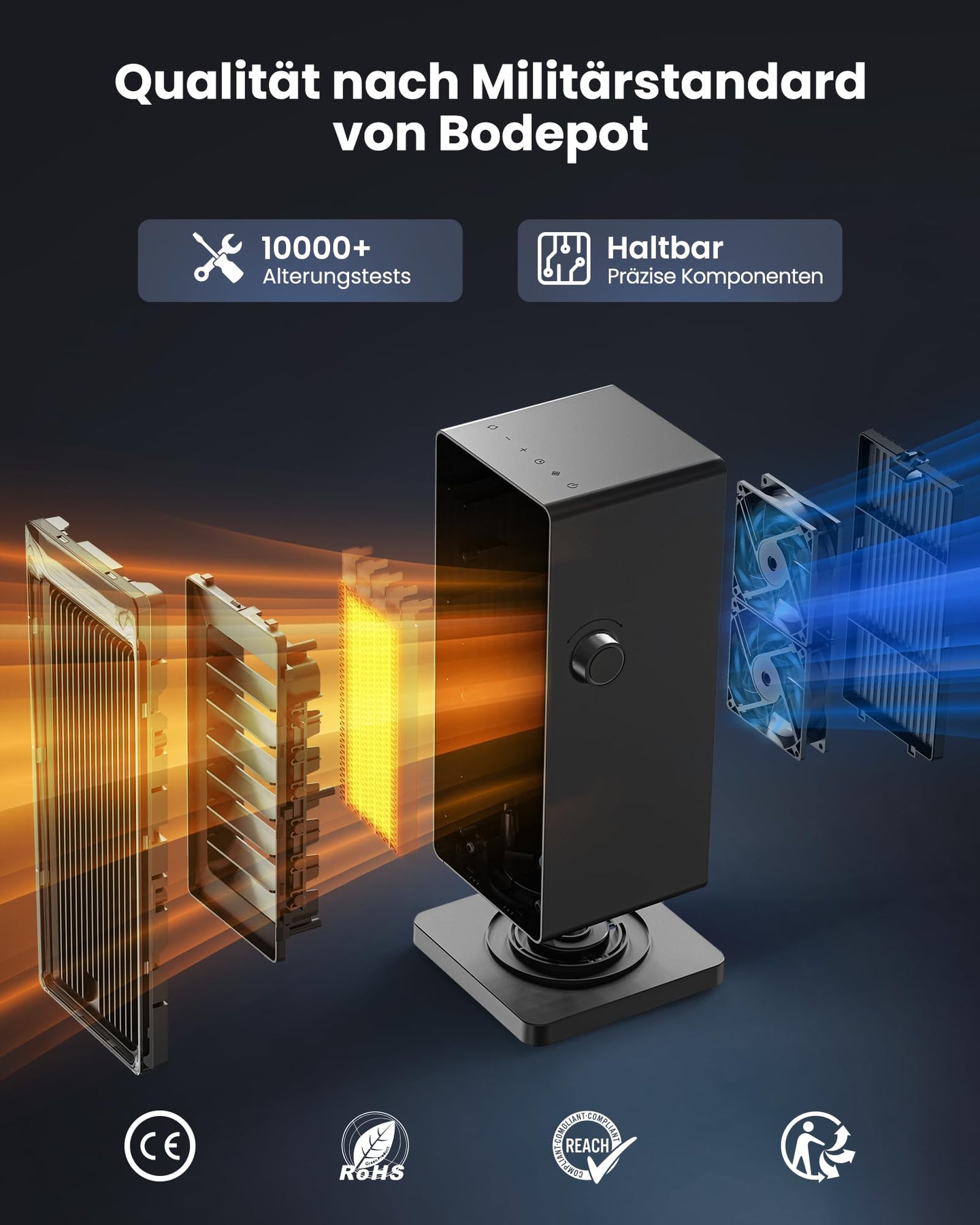 - 【Militärische Haltbarkeit】 Heizlüfter Bad wird sorgfältig nach militärischen Standards gefertigt und bestehen 10.000 Alterungstests, um eine hervorragende Haltbarkeit und Zuverlässigkeit zu gewährleisten. Jedes Heizgerät wird mit ausgewählten, hochwertigen Teilen und Präzisionsarbeit hergestellt, um Ihnen ein unvergleichliches Heizerlebnis zu bieten und Ihnen den Ärger mit abfallenden Teilen und häufigen Reparaturen zu ersparen
