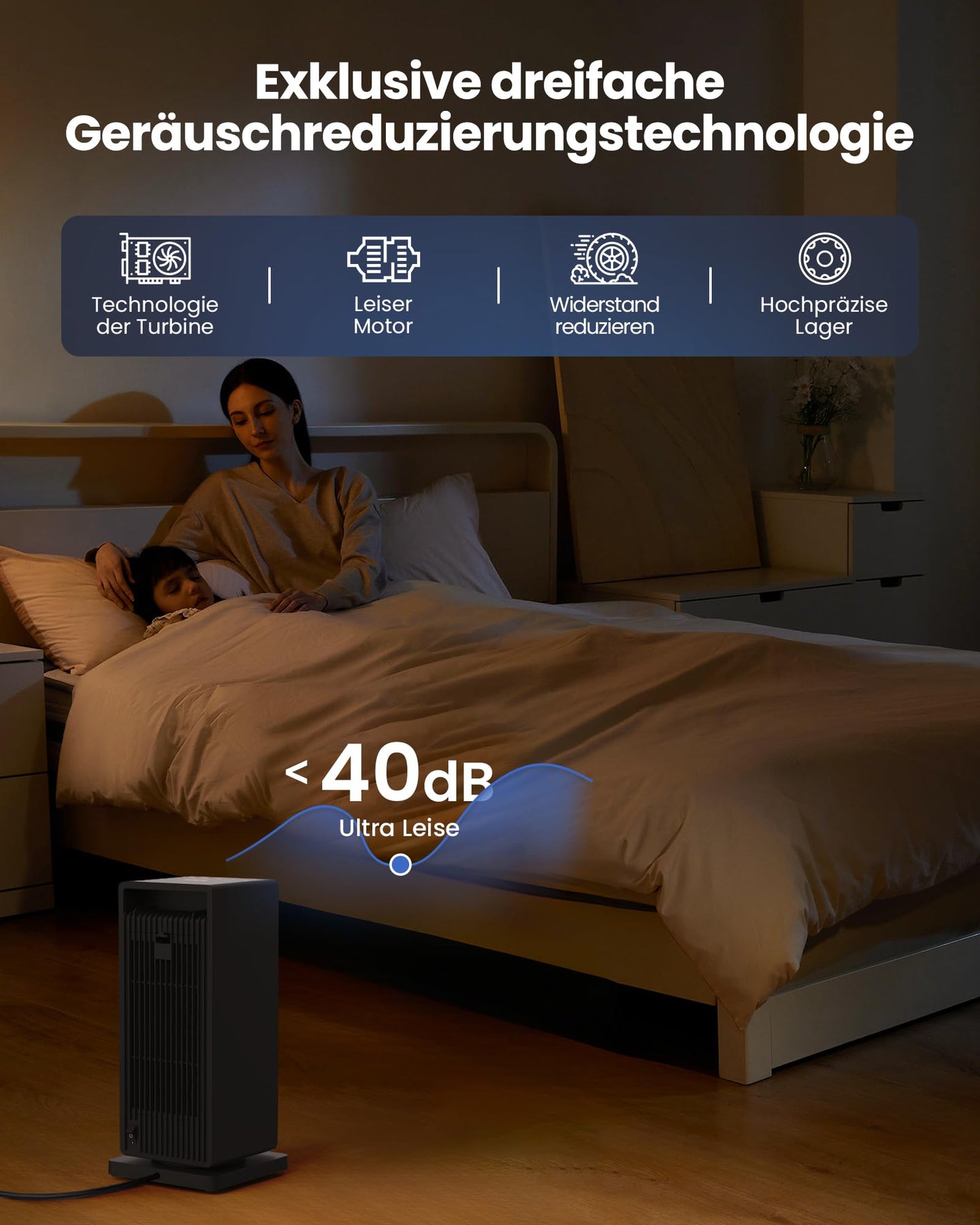 - 【Einzigartige leise Technologie】 Im Gegensatz zu herkömmlichen elektrischen Heizungen verwenden wir ein innovatives Luftkanal-Design und effiziente schallabsorbierende Materialien, um das Betriebsgeräusch erheblich zu reduzieren und eine ruhige Heizumgebung für Ihr Wohnzimmer, Schlafzimmer und andere ruhige Räume zu schaffen. Genießen Sie die Ruhe in der Wärme, keine Lärmbelästigung mehr