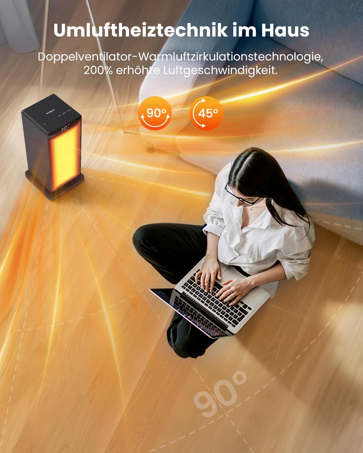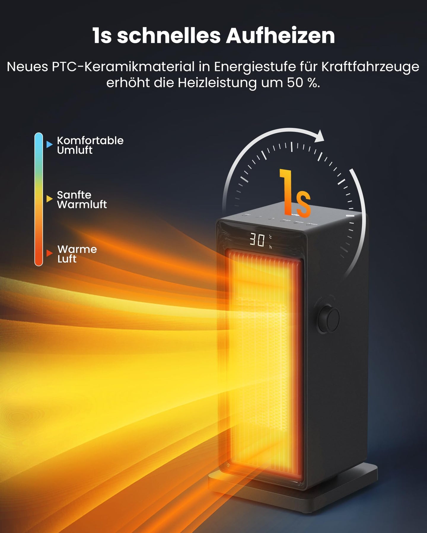 - 【1S sofortige Wärme】 Ausgestattet mit einem hocheffizienten 2000W PTC-Keramik-Heizelement, kann Keramik Heizlüfter innerhalb von 1 Sekunde schnell aufheizen und Ihnen sofort Wärme spenden. In Kombination mit dem innovativen Konvektionsluftkanal-Design und der Dual-Ventilator-Technologie ist er in der Lage, die Wärme gleichmäßig und kraftvoll zu verteilen, sodass Sie sich von kalten Händen und Füßen verabschieden können