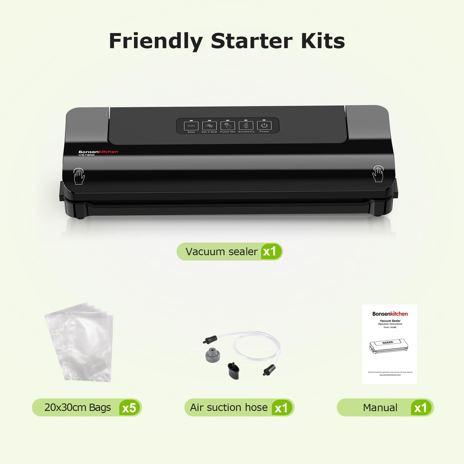 - Bewahren Sie die Frische und reduzieren Sie den Abfall: Bonsenkitchen Vakuumierer sind für das Vakuumieren von Lebensmitteln bei niedrigen Temperaturen geeignet. Das Vakuumiergerät entfernt effektiv die Luft aus den Beuteln, verhindert das Anbrennen von Lebensmitteln im Gefrierschrank und hält die Lebensmittel bis zu 6 Mal länger frisch als normale Aufbewahrungsmethoden. Reduziert die Lebensmittelverschwendung erheblich und spart Geld und Zeit. Verwenden Sie am besten den professionellen Bonsenkitchen-Vakuumbeutel mit tiefem Luftkanal, um eine gute Abdichtung zu erreichen.