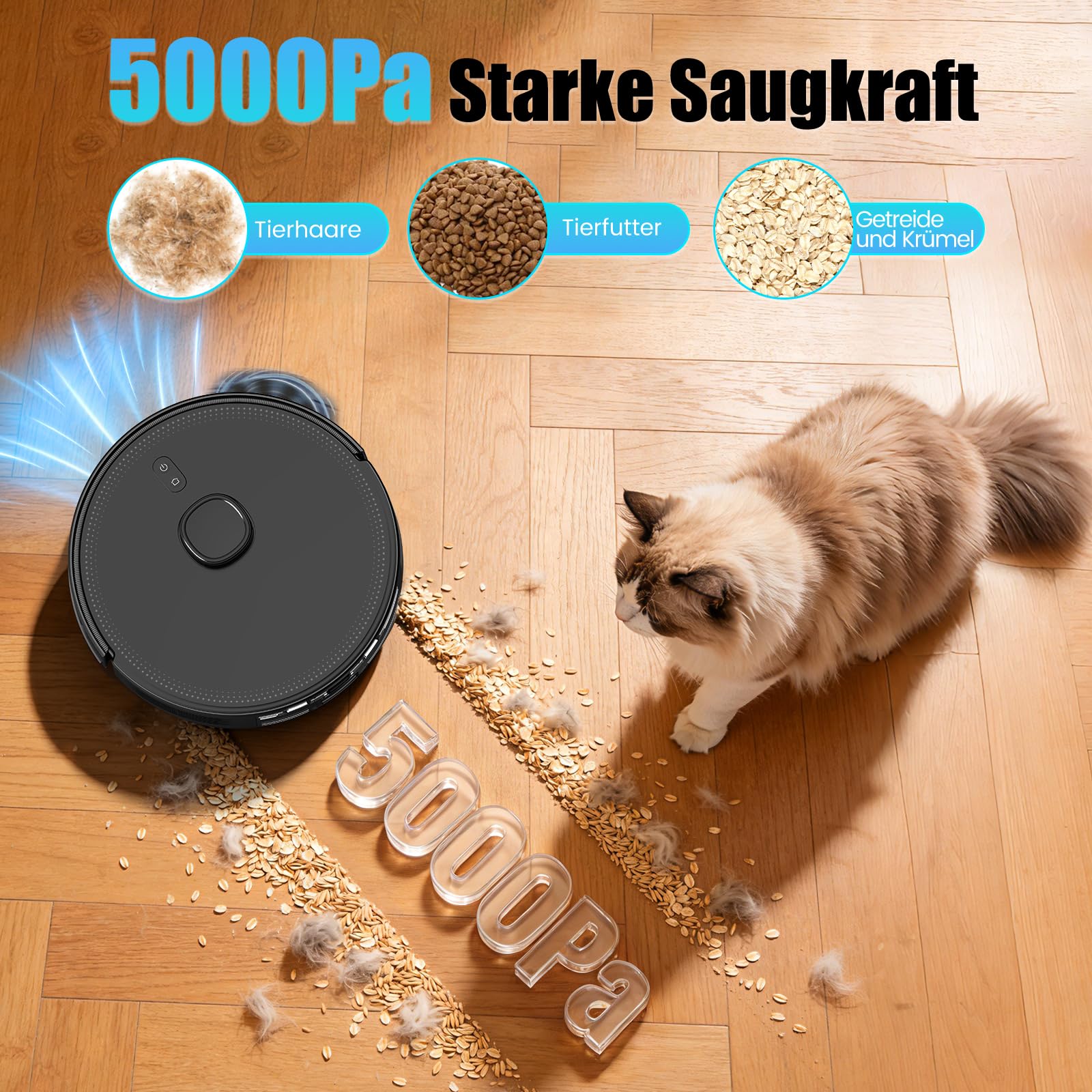 • Hochleistungs-Saugkraft 8000Pa: Dieser Staubsauger Roboter mit Wischfunktion bietet 4 einstellbare Saugstufen mit einer maximalen Saugkraft von bis zu 8000 Pa, mühelos Tierhaare, Staub und Schmutz. Staubsauger Roboter verfügt über einen abnehmbaren schwebender Hauptbürsten, der sich besser an alle Arten von Bodenbelägen anpasst.