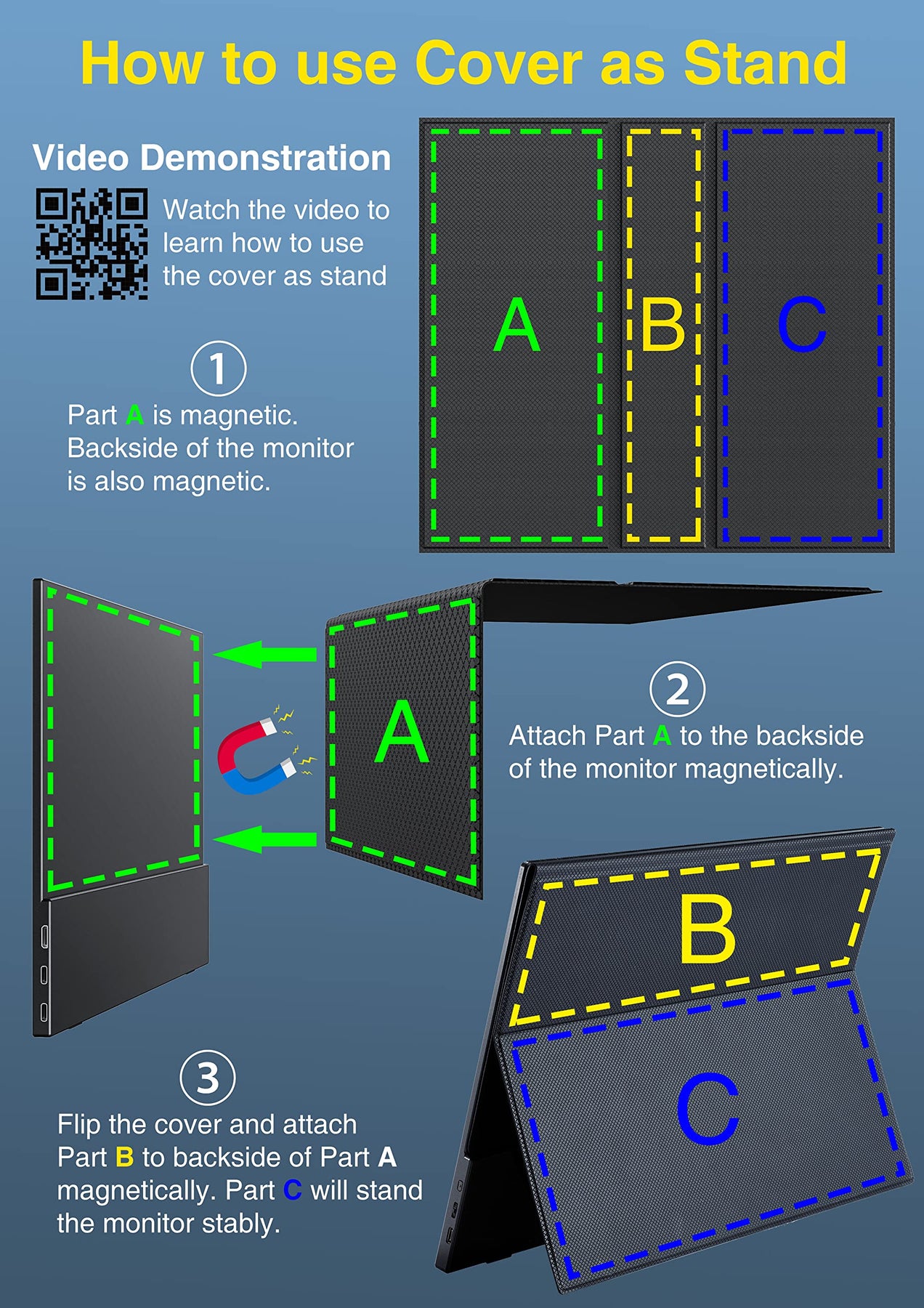 - 【FHD-Monitor, tragbar, VESA-Halterung】Mit einer Auflösung von 1080p, 85 % Farbgamut, 178 ° Voll-Betrachtungswinkel, HDR, und Low Blue, super klar, IPS-A-Grade, dieser tragbare Bildschirm für Laptop mit zwei VESA-Löchern kann leicht und stabil auf einem Ständer für den Landscape und vertikalen Modus montiert werden. für hohe Produktivität y